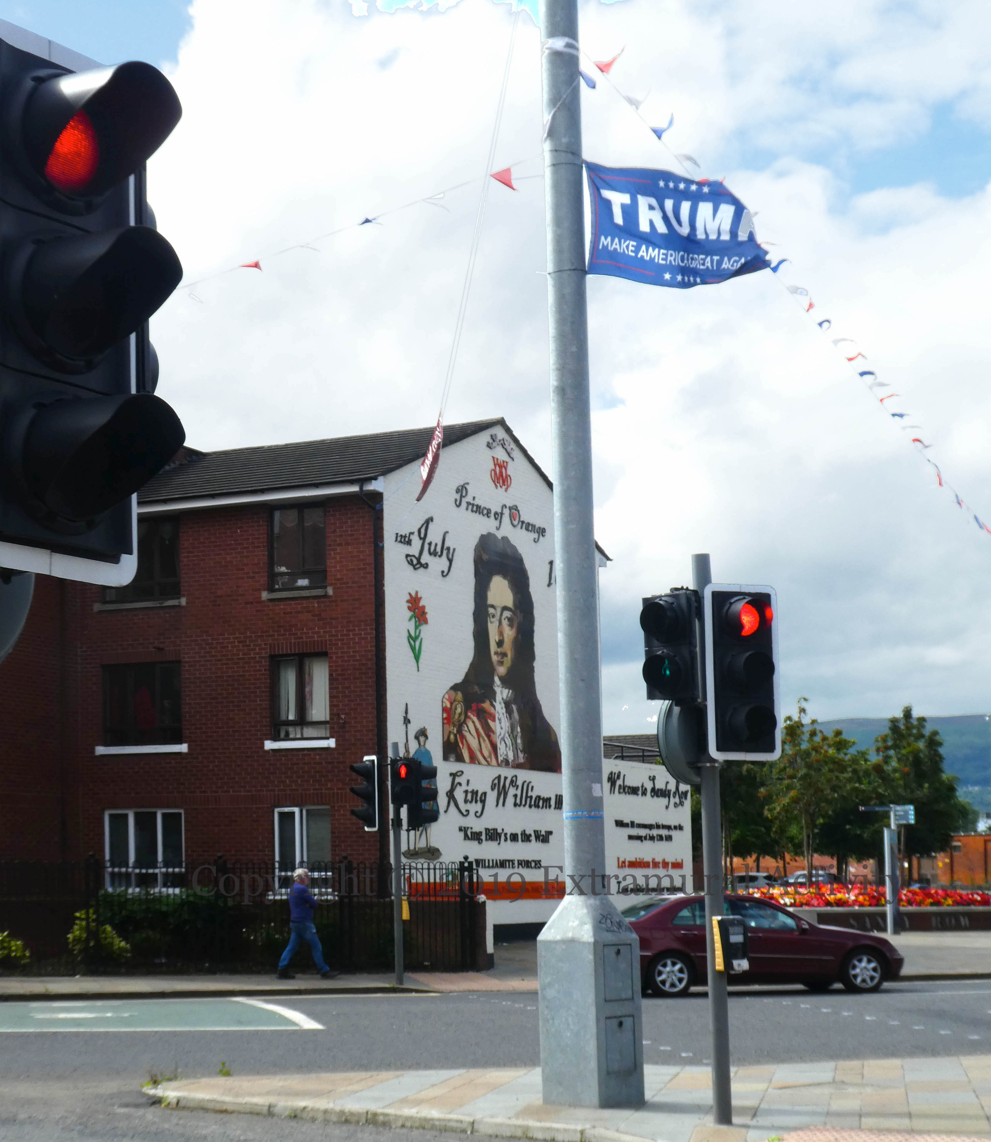 The Trump flag flies over Sandy Row, next to the other ‘Prince Of Orange’.