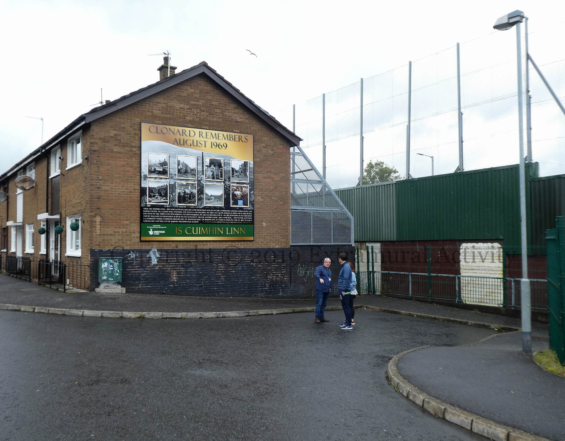 Republican Seán Murry’s great-grandfather was in the British Army and Orange Order and his family lived on the Shankill Road. One of his daughters married a Catholic and converted. The history of the family on both sides of the wall is also depicted Murray’s short video ‘The Wall‘. The poem is next to Clonard Remembers.