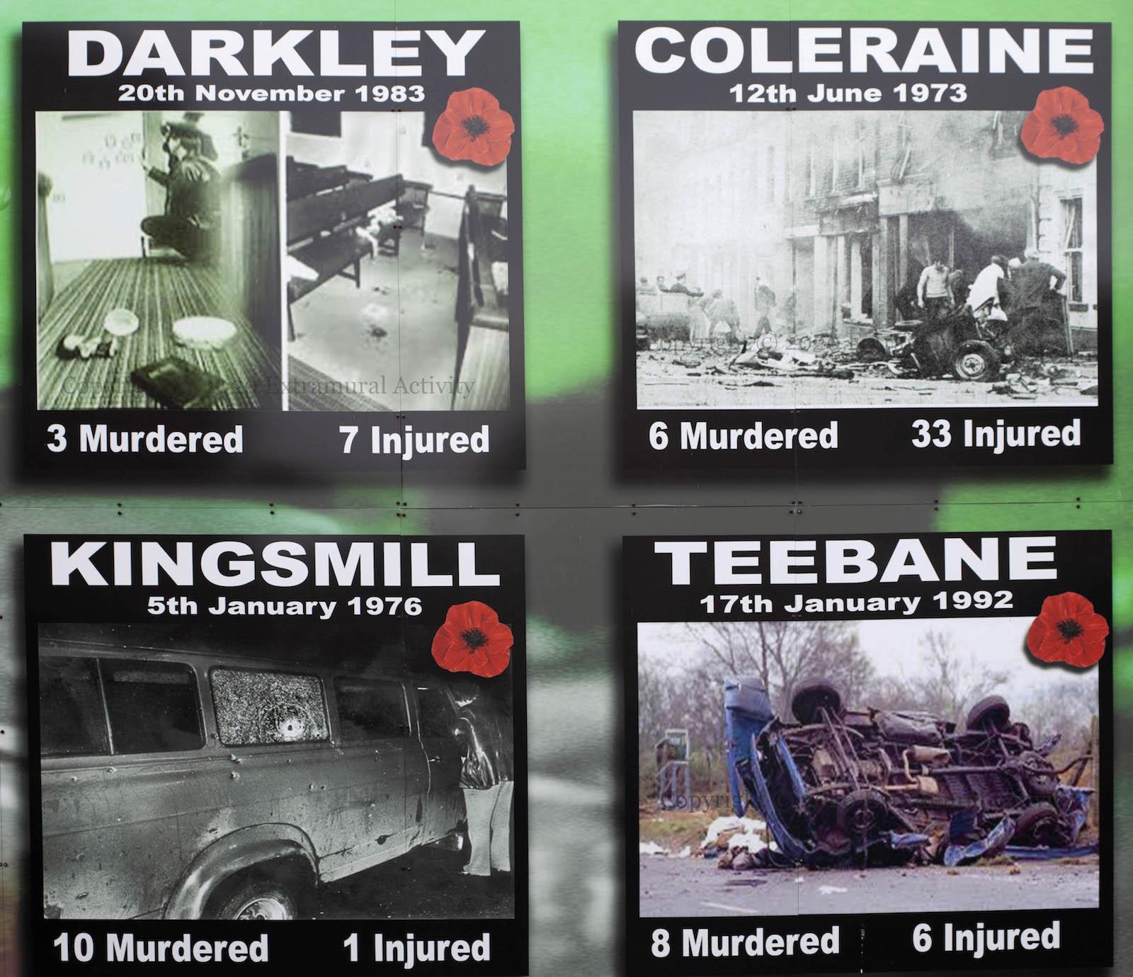 “The slaughter of the innocent by the blood soaked hands of Sinn Fein/IRA never to be forgotten. The dead cannot cry out for justice. It is a duty of the living to do so for them. Is this the equality Sinn Fein/IRA asks for? No economic targets, no legitimate targets, no enquiries, no truth, no justice. Hold dear the memory of all the innocents murdered in our country in support of the Sinn Fein electorate. This memory extends to those not mentioned here who were murdered going about their daily lives at work, at prayer and in remembrance. Nothing was sacred in the futile question for a united Ireland.”