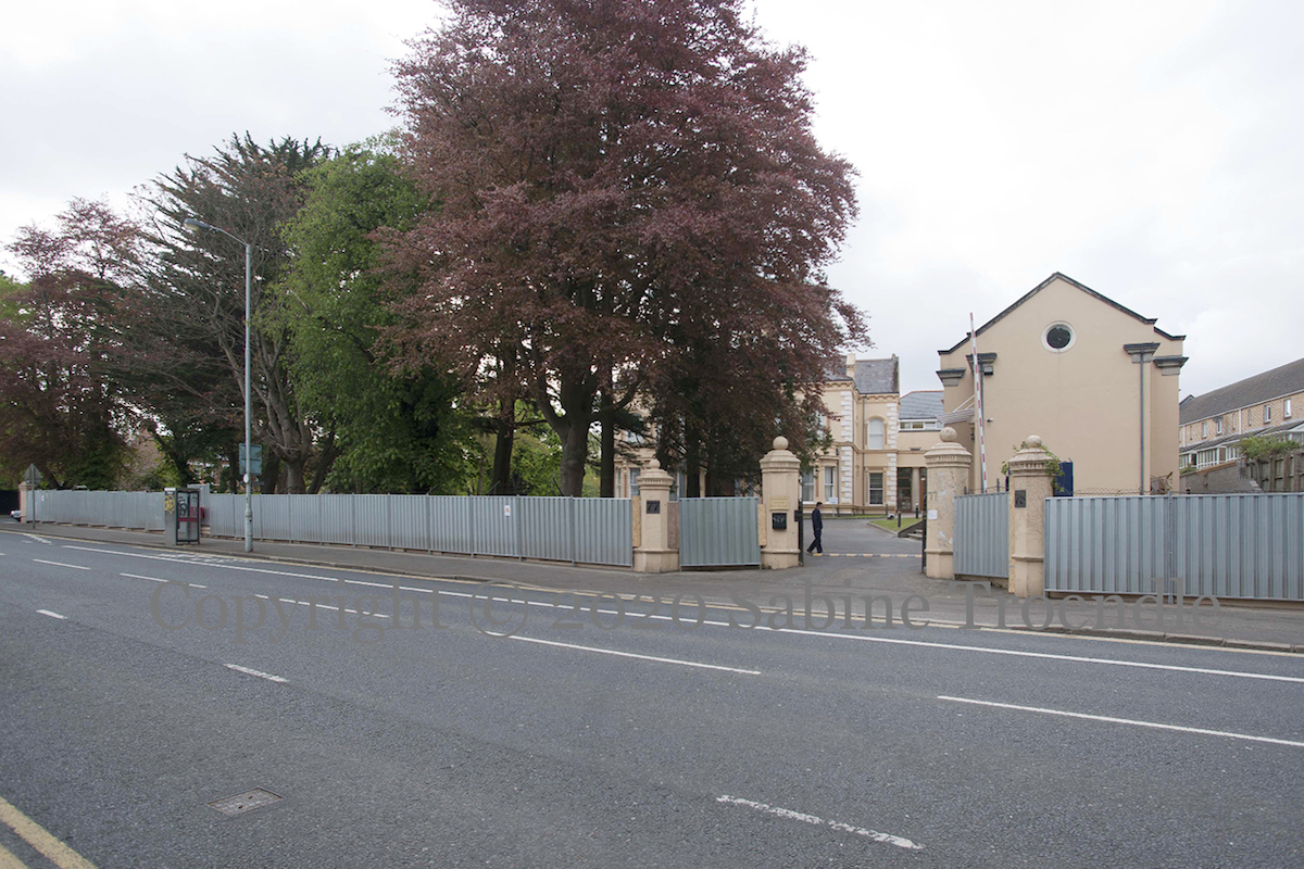 The bilingual sign says “temporary enclosure” but neither the Irish News or the Belfast Telegraph has been able to get a comment from the Chinese Consulate in Malone Road about the “ring of steel” erected around (what is currently known as) MacNeice house. Local residents have complained that the fence, which replaces a hedge, is an eyesore, not fitting for Malone Conservation Area.