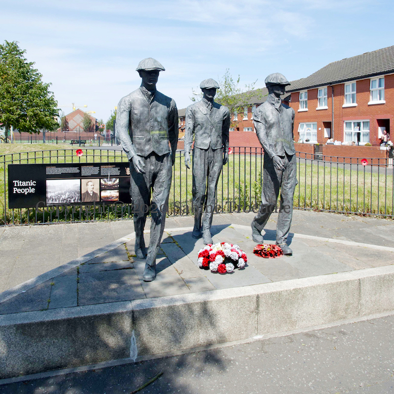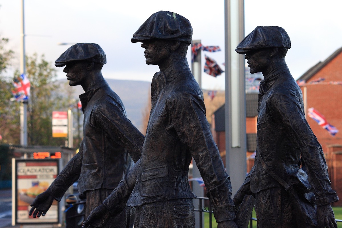 “Overlooked by the iconic Harland and Wolff cranes, Samson and Goliath, The Yardmen is a bronze sculpture depicting three shipyard workers returning home to East Belfast.” “At its peak 30,000 people were employed in the shipbuilding industry in Belfast. A high proportion of them lived in the terraced streets off the Newtownards Road. Not far away is one of the best preserved terraces of workers’ houses in Belfast – McMaster Street, begun in 1898. Most of the workforce was drawn from the countryside around Belfast, though many skilled workers were recruited in Britain. While shipbuilding was harsh and often dangerous work, the standard of living for workers was generally higher than that of shipyard employees in other British cities.”