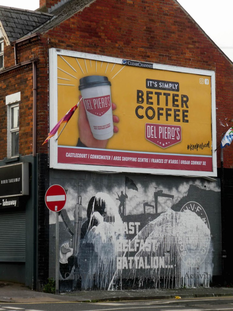 The UVF mural in Carrington Street has been paint-bombed. Given the location and the extent of the paint, it’s likely that this was the result of some local (PUL) grievance. It will be interesting to see if it is restored, or replaced or painted out.