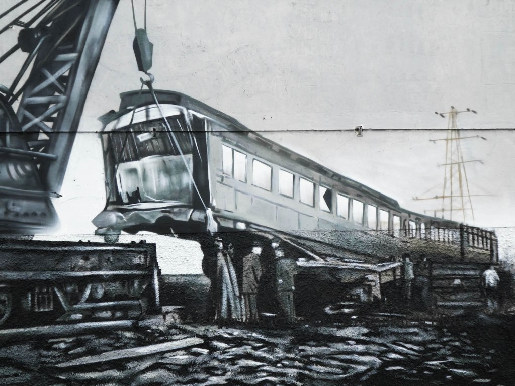 The old Ballymacarrett station was the last stop before Belfast when travelling from points east such as Holywood and Bangor. On the morning of January 10th, 1945, a faulty signal caused the 7:10 from Bangor to be halted at Ballymacarrett, only for it to be hit from behind by the oncoming 7:40 from Holywood. The steel lead-car of the Holywood train ploughed through the whole of the last carriage’s wooden coachwork and on into the penultimate carriage, causing the death of 22 people and injury to another 27 (WP).