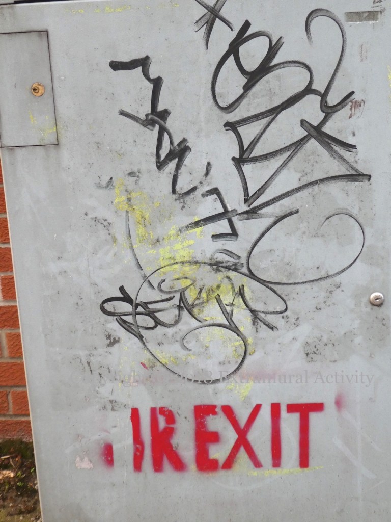 When it was launched in September 2018 (Irish Times), the Irish Freedom Party (web | tw) found some support in at least one north Belfast stencilist. But murals and graffiti that don’t meet with universal approval draw public replies: “Irexit … is a shite ideology perpetuated by fascists. My 32 counties doesn’t do racism. No pasaran!”