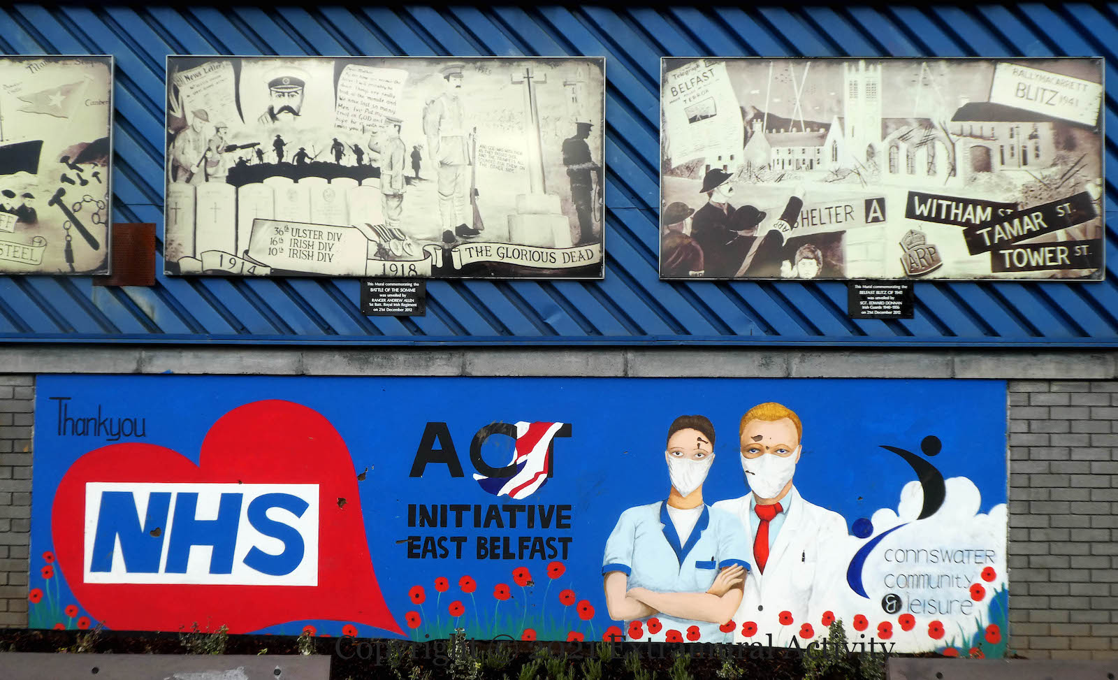 Four of the 700 NHS staff in the UK to die of Covid during the pandemic have come Northern Ireland, the most recent being dementia specialist Alan Henry in Antrim hospital (Express | BelTel | iTV). In the south, Defence Forces have been deployed to three nursing homes while 6,400 health workers are off sick (Irish Times). The mural above shows a masked nurse and doctor among a field of poppies. For the black-and-white boards above, see Connswater Commemorates.