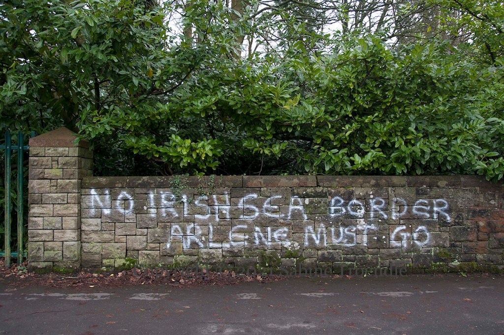 Brexit has happened and people, particularly hauliers and smaller retailers, are having trouble adjusting to the fact that Northern Ireland remains within the EU customs union and single market for goods, which means additional paperwork for goods moving between NI and Britain (BBC | Belfast Live). The current disruptions will likely be overcome in due course but the presence of a border is symbolically powerful. This east Belfast graffitist is unhappy with the outcome: “No Irish sea border – [DUP leader] Arlene [Foster] must go.” George Osborne, former UK chancellor and now editor at the London Evening Standard, called the DUP’s decision to reject Theresa May’s deal “stupid” (BelTel) and the FT called the DUP nationalism’s “secret weapon” (ft.com). The Tele wonders if Gavin Robinson is angling for a crack at the leadership (BelTel).