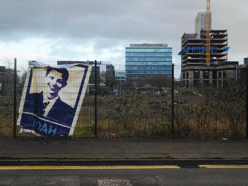 Two more images connected to the ongoing search for answers in the death of Noah Donohoe. Above, a large tarp in Corporation Street; below, an additional banner in Carrick Hill, alongside Carrick Hill Supports Fiona.