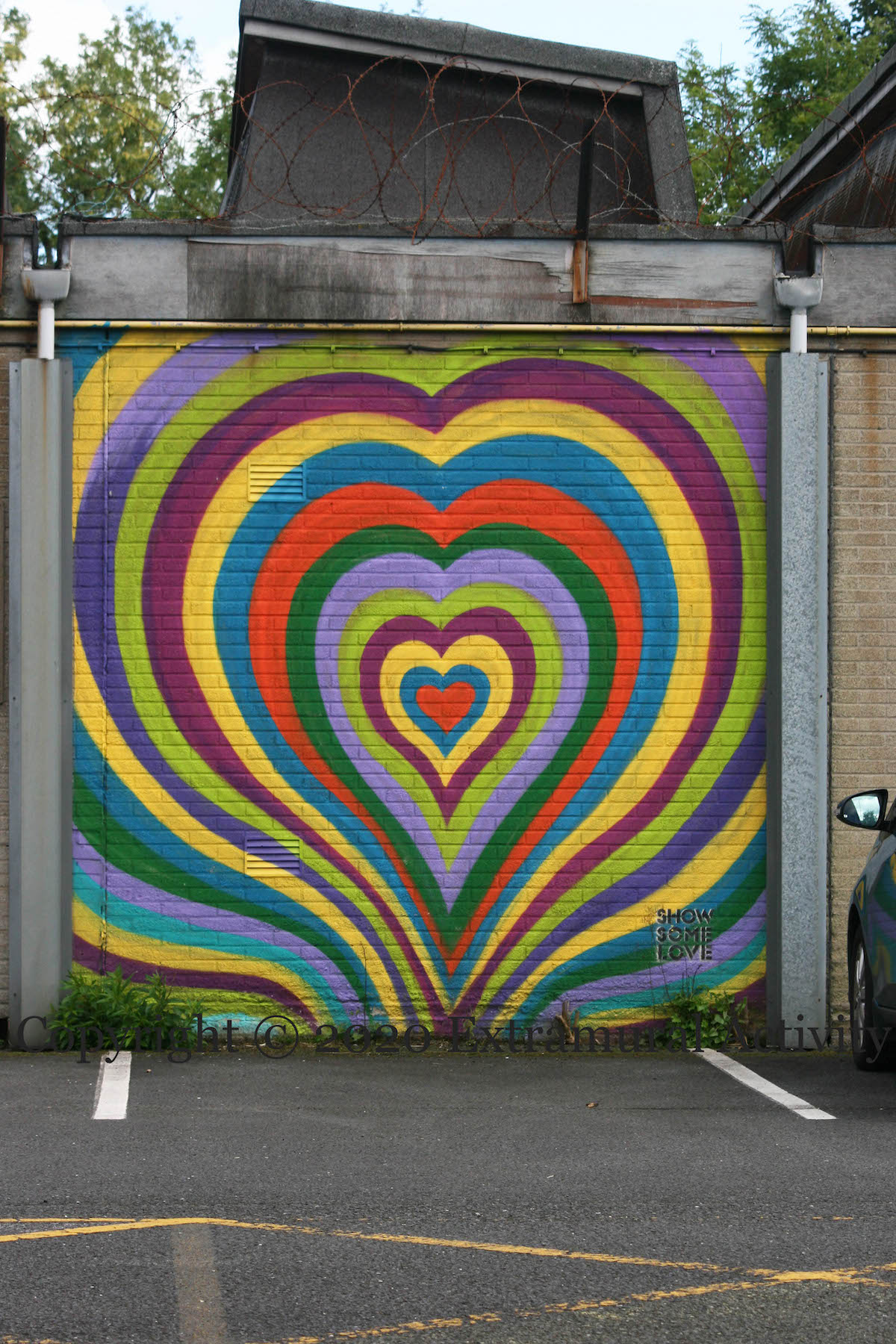 Another World Belfast (web | Fb) collects toiletries and underwear for distribution – via local charities and community groups – in “Love Packs”. This ‘heart of hearts’ mural in support of the project is in the grounds of the Vault Artists (Fb | tw) in East Belfast.