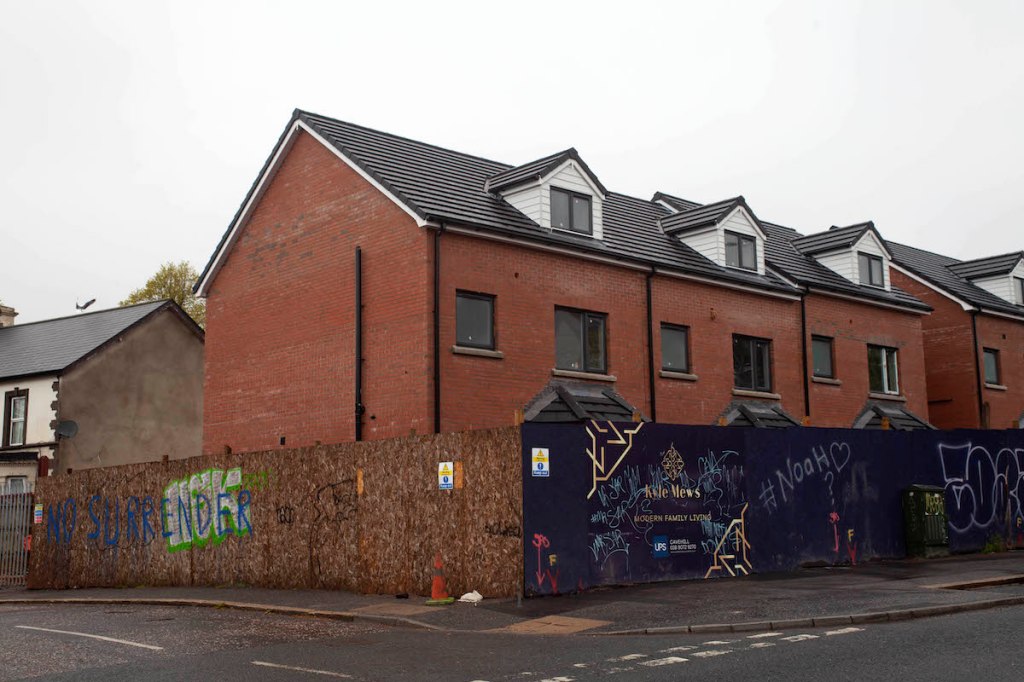 The first four units of these 3 bedroom semi-detached houses on the Cavehill Road, collectively called “Kyle Mews“, will be available in mid October, by which time the construction wall with its “No surrender” graffiti from the neighbouring Westlands should be gone.