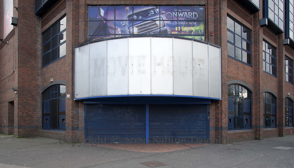 Demolition of the Movie House on Dublin Road has begun (John Campbell/BBC) in order to make way for the Kainos Software headquarters (BelTel). The image above was taken on April 26th, 2020, the day of the cinema’s last showings (BelTel).