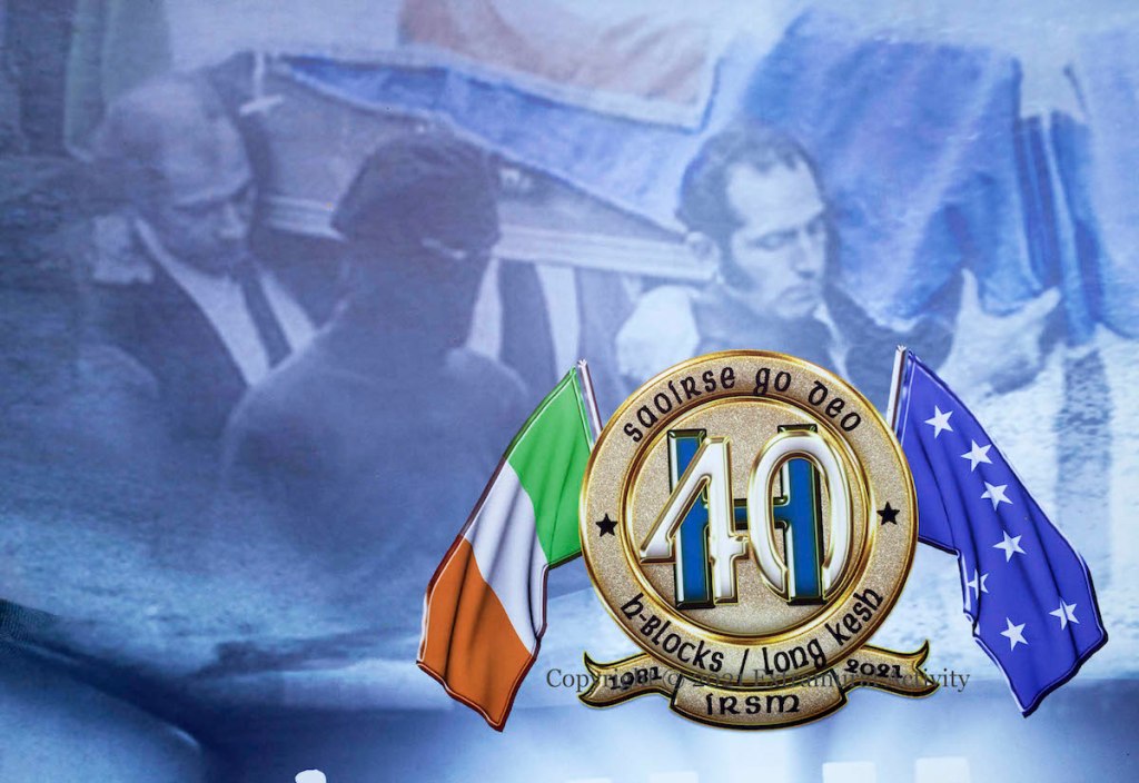 “Saoırse go deo.” INLA volunteer Kevin Lynch went on hunger strike 40 years ago yesterday, May 23rd, 1981. He would die 71 days later, on August 1st. His funeral is depicted above, part of a new IRSP/IRSM board commemorating the 40th anniversary of the 1981 hunger strikes. The Tricolour (for the IRA) and Starry Plough (for the INLA) are used as blankets on the prison beds. The board is flanked by two other IRSP boards, one against the PSNI (“96% of Divis residents do not support the PSNI – defund, disarm, disband”) and one dedicated to founder Seamus Costello (“He was the only one who truly understood what James Connolly meant when he spoke of his vision of the freedom of the Irish people.” – Nora Connolly at Costello’s funeral) that was previously in Hugo Street.
