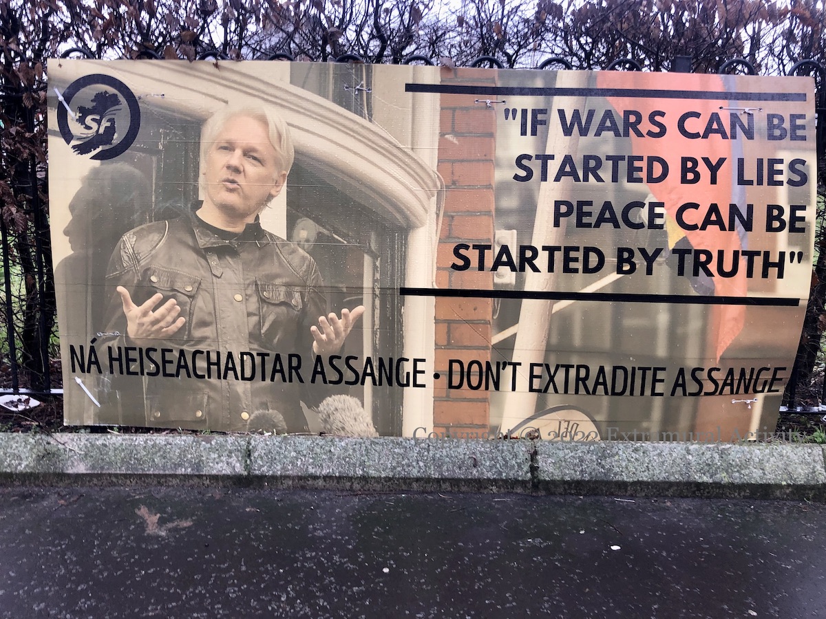 “Ná heıseachadtar Assange – Don’t extradite Assange” – in December of last year (2021) the British court of appeal ruled (NYTimes) that WikiLeaks founder Julian Assange could be extradited to the USA to face charges relating to the publication of the Chelsea Manning leaks of US operations in Iraq and Afghanistan in 2010. His fate is now in the hands of UK Home Secretary Priti Patel (Al Jazeera). The Sınn Féın board shown above is at the Falls Road-Glen Road roundabout.