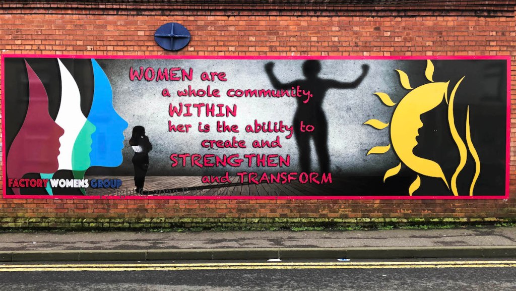 “Women are a whole community – within her is the ability to create and strengthen and transform”. The mural is part of the ‘Communities in transition’ programme from Factory Women’s Group/Factory Community Forum (web | Fb), along with the ‘Be Aware’ mephedone campaign.