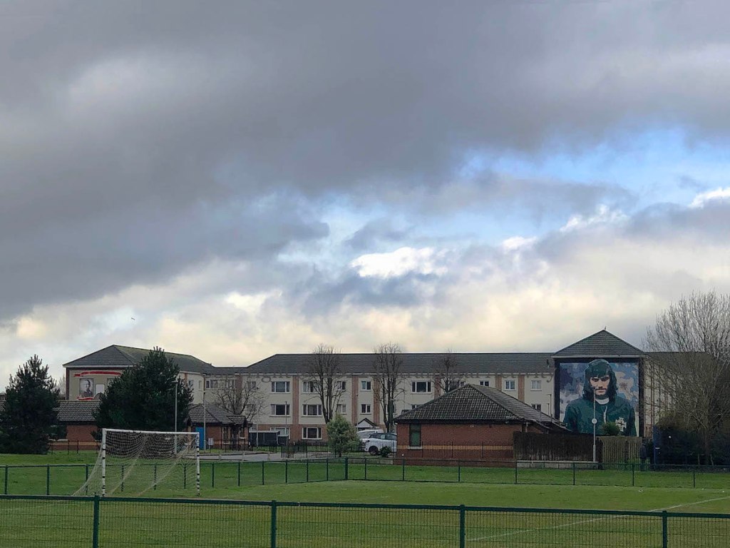 From the age of two-and-a-half George Best lived in Cregagh and played football on the pitch at the centre of the estate, where Cregagh Boys played their home games. After playing for Lisnasharragh Secondary he went to Manchester United at age fifteen – in 1961 – and from there to international stardom. When he died in 2005, he was remembered in the estate by a mural (that replaced a UFF mural). It stood for about ten years and now been updated with the mural shown in today’s images, along with the family home that has been returned to a 1960’s appearance – complete with George Best memorabilia – and is available to rent on AirBnb. The home and playing fields are also the starting part of the George Best Trail.