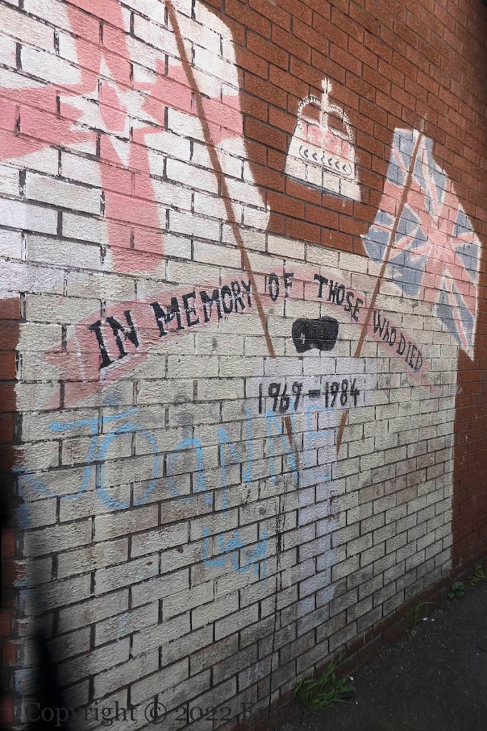 This mural – which perhaps memorialises the RUC in particular – has evidently been rolling since 1984 and the two different styles of house and brick (in the image below) explain its longevity – it’s in a narrow alley between two different stages of construction on Sydney Street West, initially to where the old Harrybrook Street used to be and then extended out to Snugville Street.