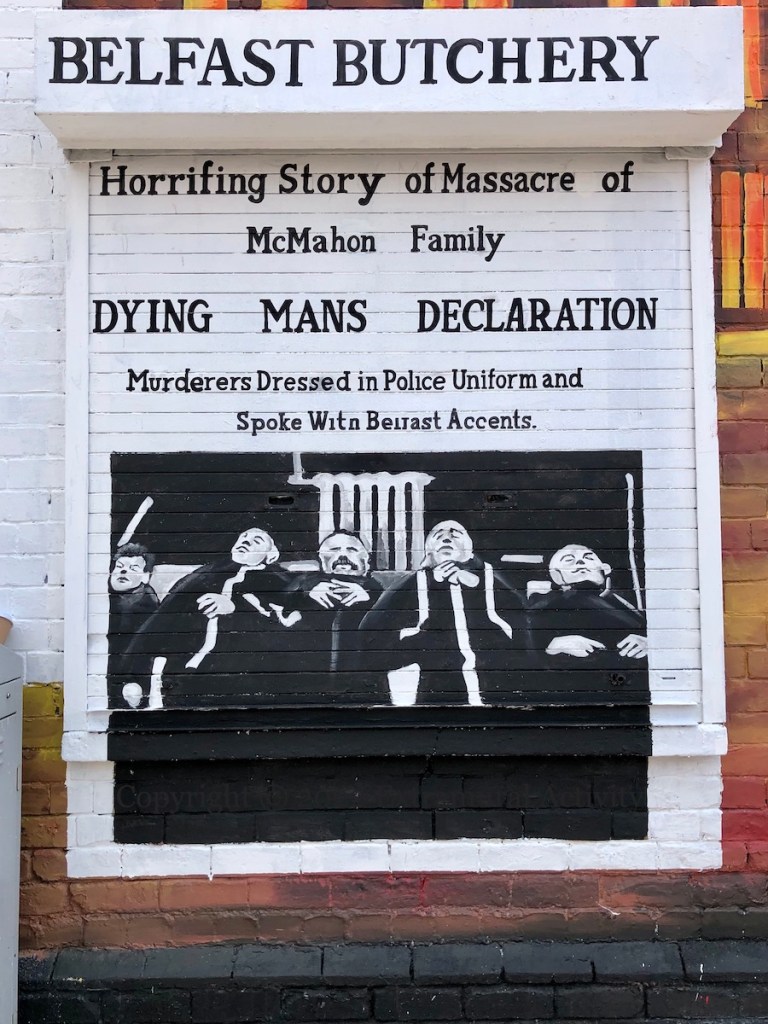 “Belfast Butchery – Horrif[y]ing story of massacre of McMahon family – Dying man[‘]s declaration – Murderers dressed in police uniform and spoke with Belfast accents.”