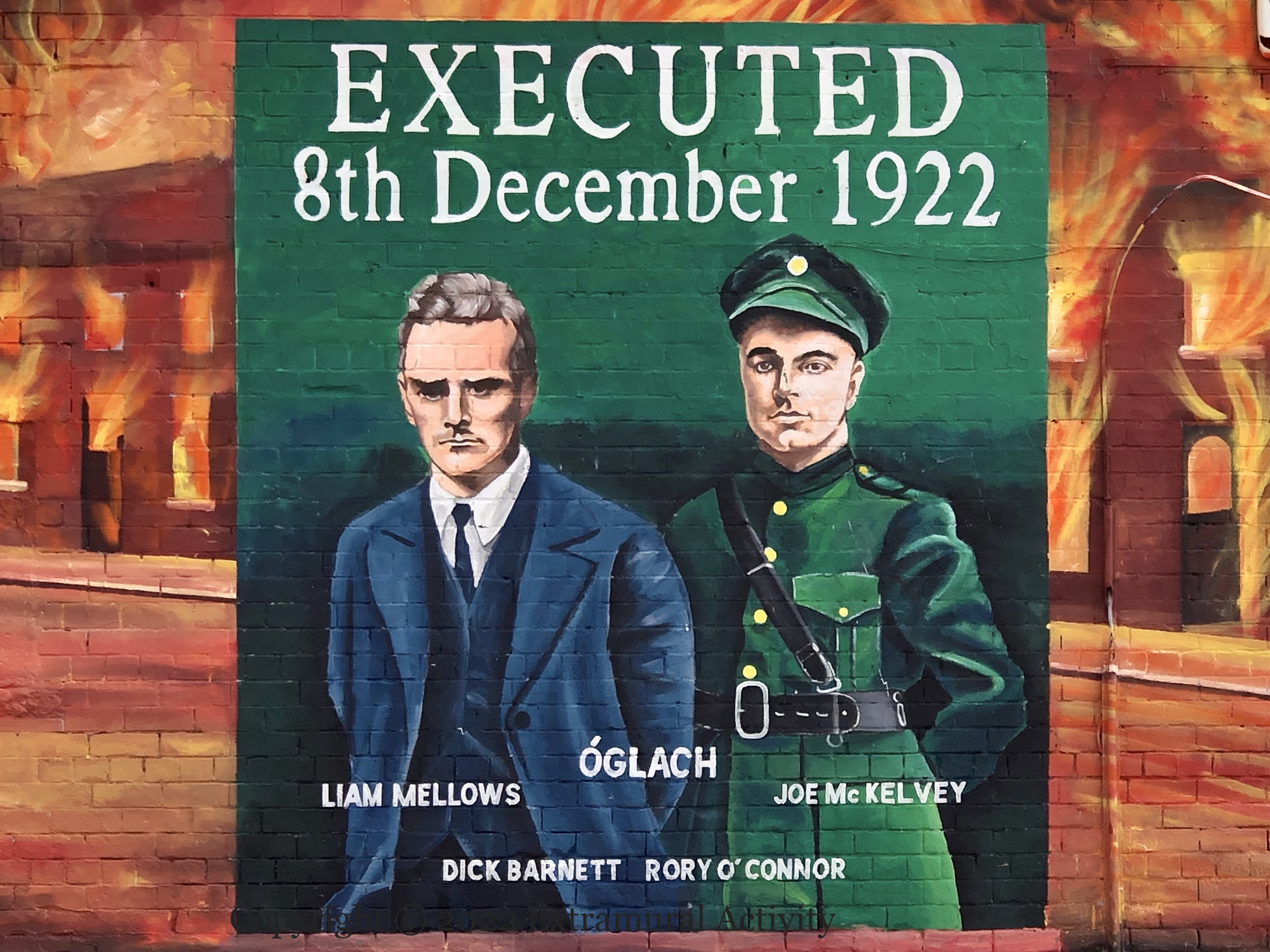 On October 18th, 1922, the third Dáıl/second Provisional Government Of Southern Ireland approved – in the absence of anti-Treaty members – a bill entitled the “Army Emergency Powers Resolution” which introduced martial law, including martial courts with the death penalty for anyone found in possession of an illegal firearm – “illegal” meaning not sanctioned by the nascent pro-Treaty Free State. Under these powers, seven IRA volunteers were executed on November 17th and 19th, followed on the 24th by Erskine Childers (a member of the team that negotiated the Treaty but subsequently against it). In response, the IRA declared that TDs who had voted for the bill were fair game, and on December 7th Seán Hales of Cork was shot and killed. In reprisal, the government ordered the execution of four more volunteers, one from each province: Liam Mellows, Joe McKelvey, Dick Barnett, Rory O’Connor. The four had been arrested five months earlier, on June 30th, 1922, at the start of the Civil War, after surrendering the Four Courts. By the end of the war, 81 executions had taken place. (An Phoblacht | Irish Times | The Irish Story | WP | WP)