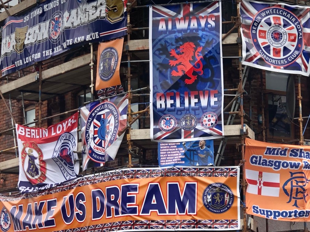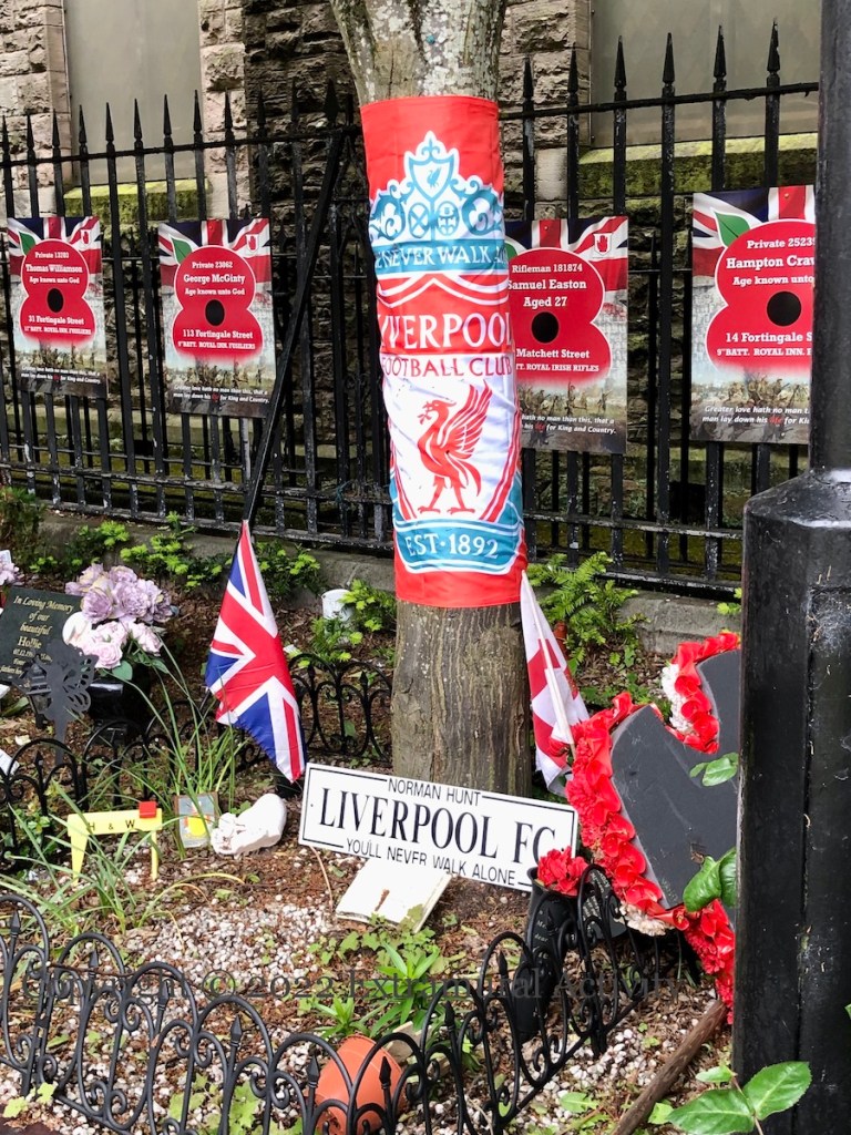 Rangers lost on penalties to Eintracht Frankfurt and attention now turns to Liverpool’s match against Real Madrid this Saturday in the Champions League final in the Stade De France in Paris. There is already some support for Liverpool on display in Belfast, as illustrated by the West Kirk graveyard (again) and a flag of the manger and stars à la Abbey Road in the Village (south Belfast) – the “Fab Four” are manager Jürgen Klopp of Germany, and players Virgil Van Dijk of The Netherlands, Sadio Mané of Senegal, and Mo Salah of Egypt. Here is a list of all the Liverpool supporters clubs in NI.