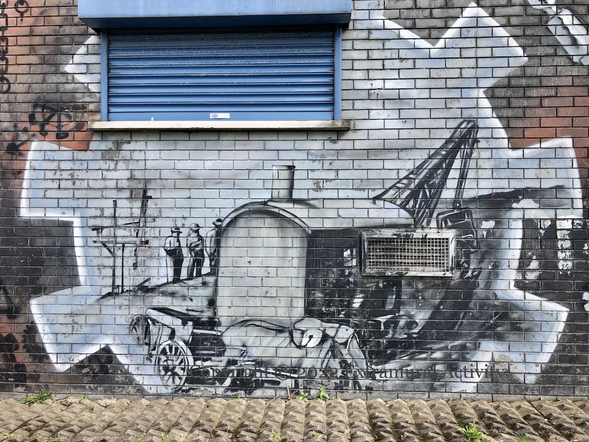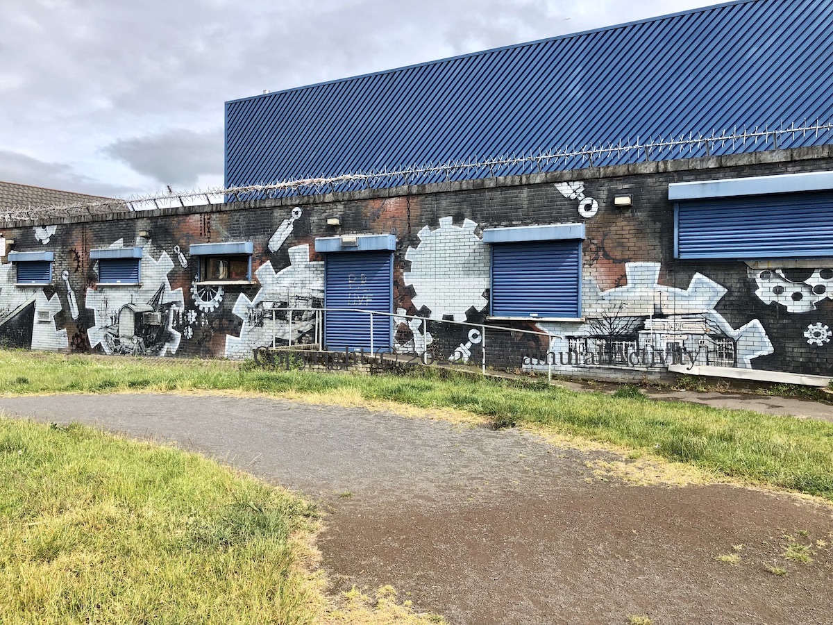 The industrial mural on the side perhaps features the Ballymacarrett rail crash of 1945, described previously in Step Back In Time.