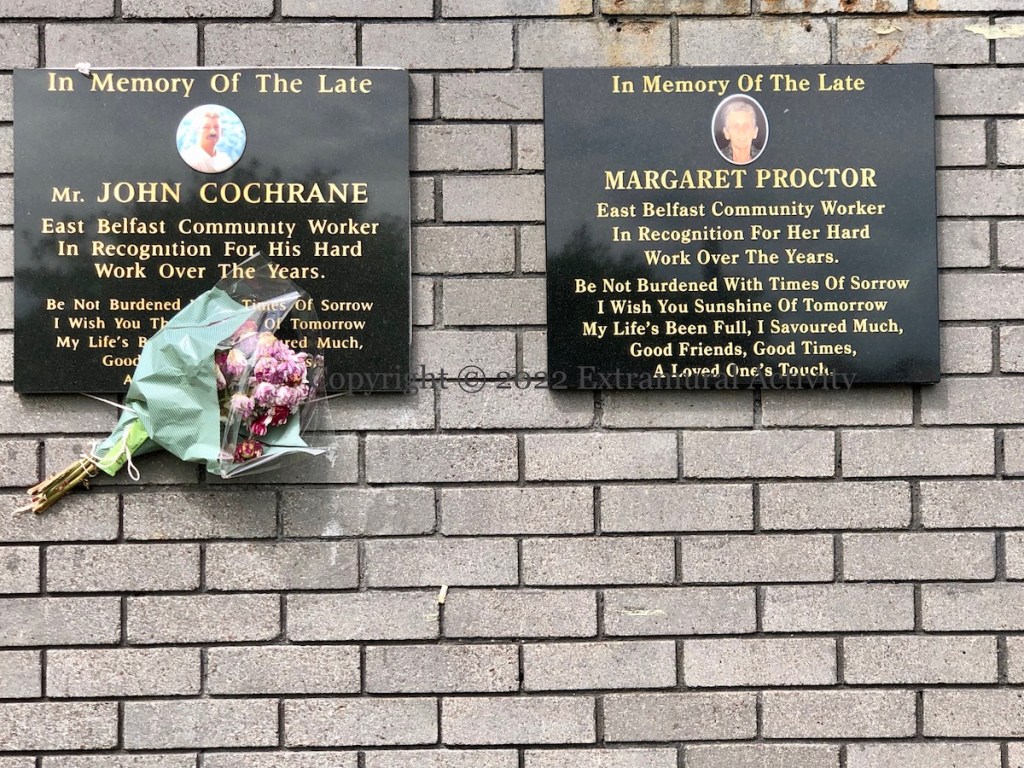 The plaques are to John Cochrane of the Mersey Street Area Residents Association and Margaret Proctor ?of the Connswater Community Centre?