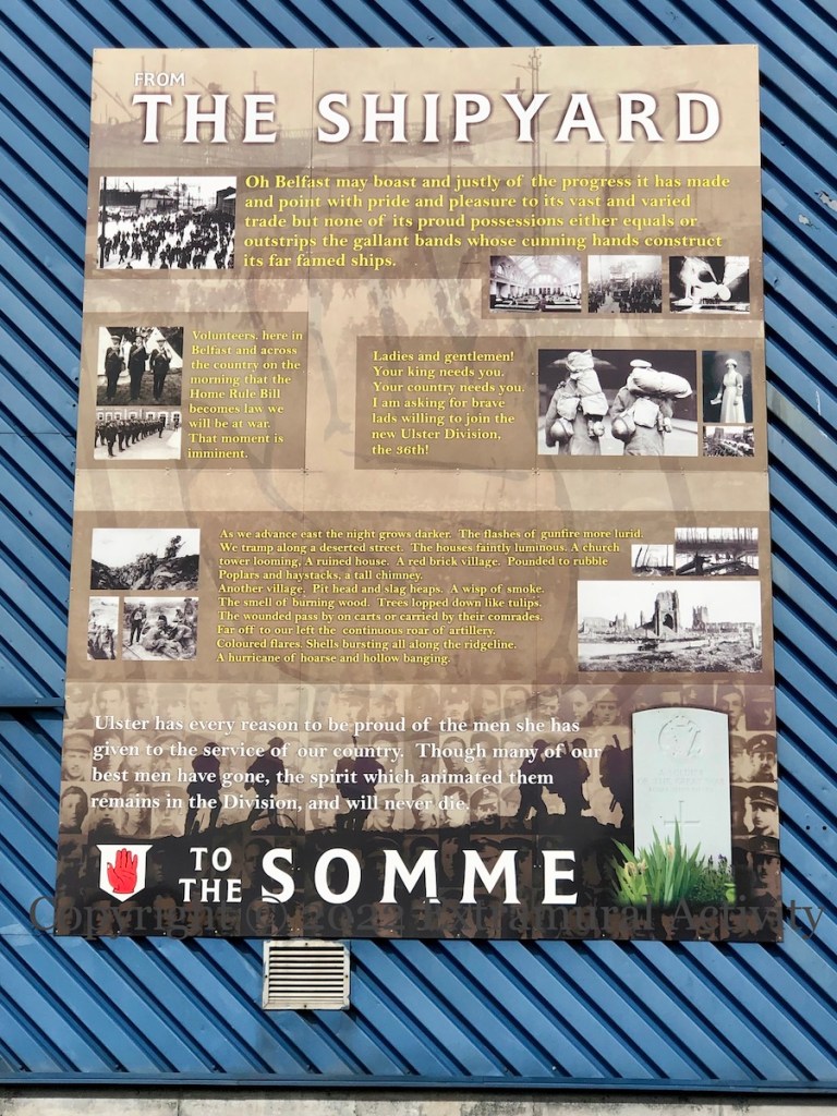 The Somme board, which dates to about 2015, is above Connswater Commemorates and The Glorious Dead.