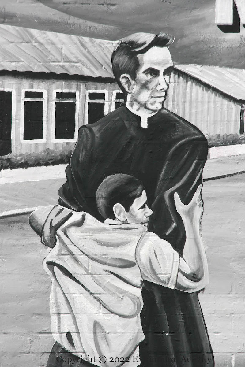 The mural shows the pre-fab aluminium bungalows built in Westrock in 1949.
