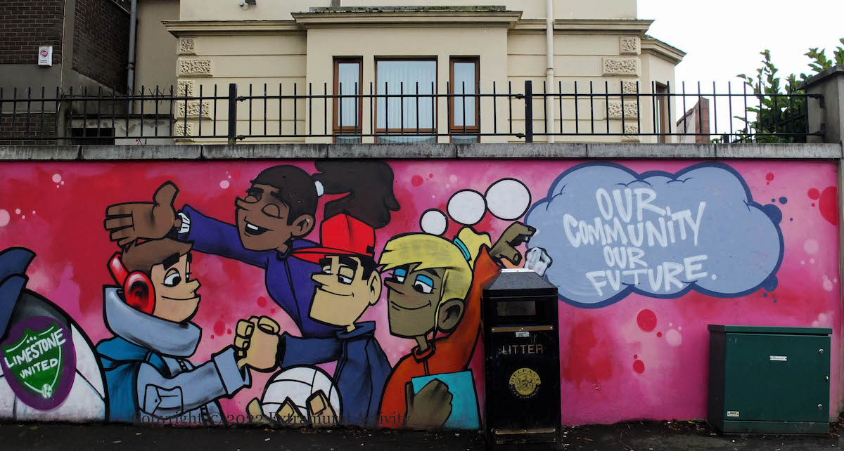 The Hallidays Road wall previously had a similar ‘Welcome’ mural on it – see The Bigger Picture.