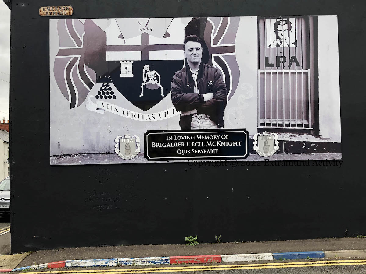 McKnight is shown (below) in front of an old Londonderry coat-of-arms mural in Bond’s Place. See also: the UDA memorial mural in Lincoln Court.