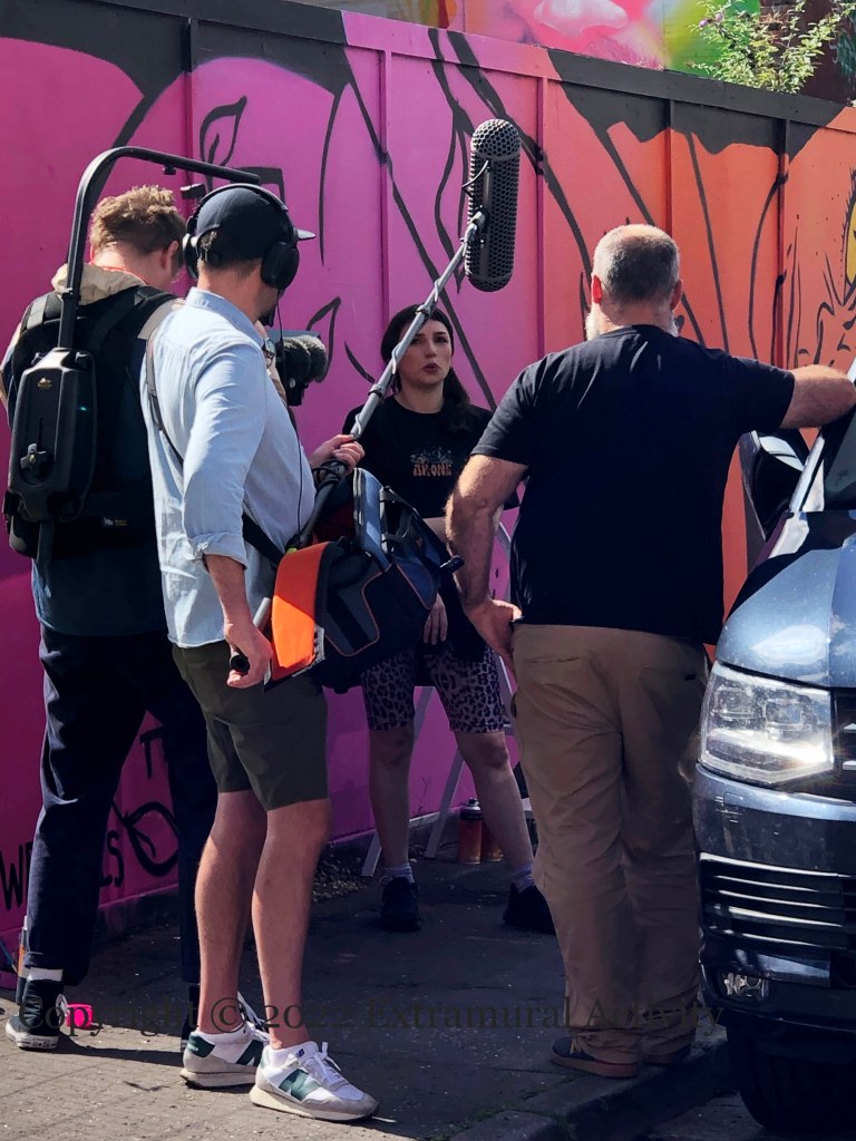 The middle image shows Wee Nuls being interviewed for a Rapyd short.