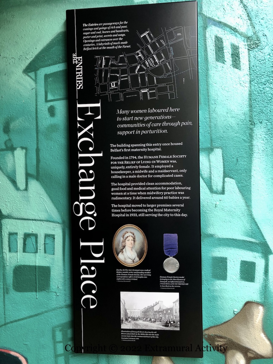 A gallery of faces from KVLR (ig) in Exchange Place, perhaps on their way to Belfast’s first maternity hospital, the Humane Female Society For The Relief Of Lying-In Women (Clifton House). “The Entries are passageways for the comings and goings of rich and poor, sugar and coal, horses and handcarts, porter and print, secrets and songs. Openings and entrances over the centuries. A labyrinth of muck-made Belfast brick at the mouth of the Farset.”
