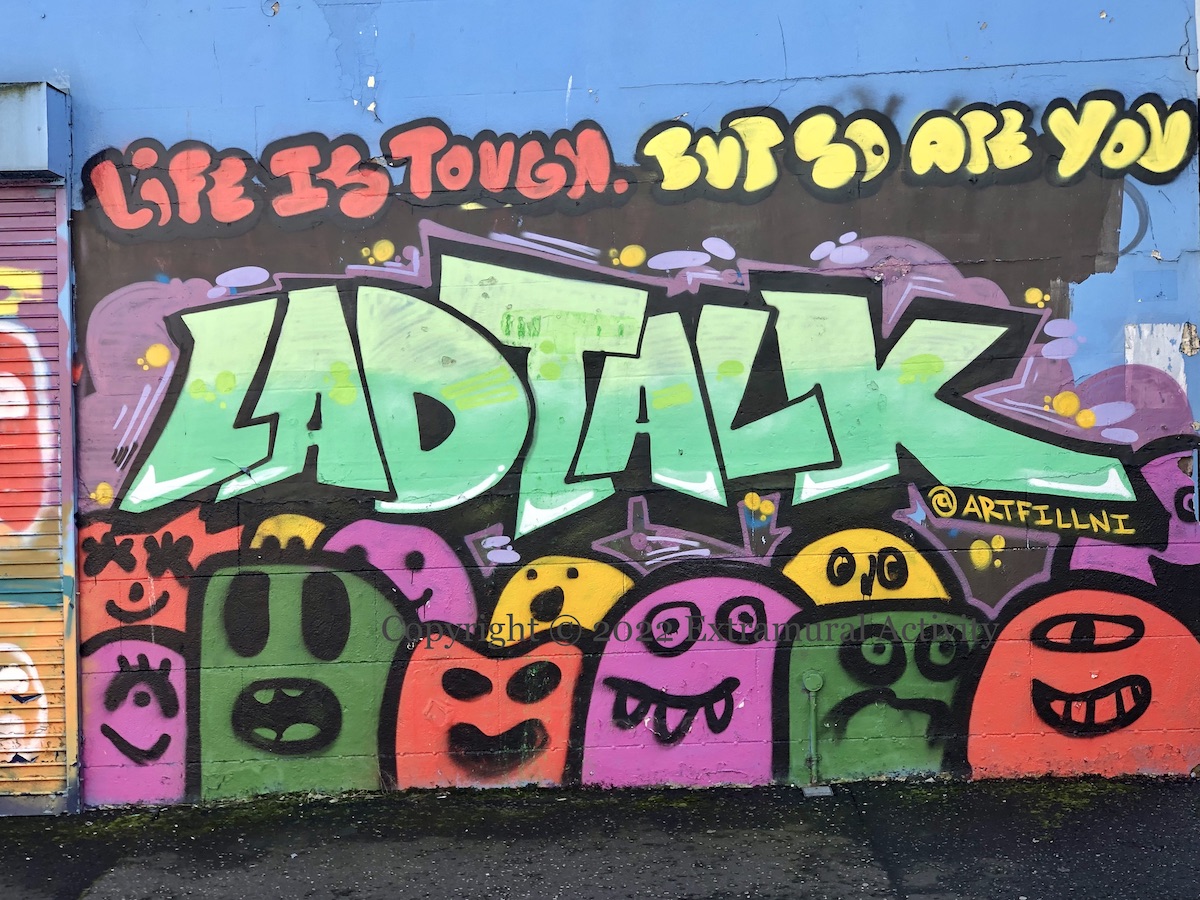 Life Is Tough 2022-10-222025-01-07Extramural Activity “… but so are you”. LAD Talk (ig | profile) mural in Sandy Row by ArtFillNI (Fb) and Codo (ig). Click image to enlargeCopyright © 2022 Seosamh Mac CoılleX11708 X11707 X11706 Stroud St Lads Against Depression LAD Belfast South Community Resources BSCR Rate ThisShare this: Click to email a link to a friend (Opens in new window) Email Click to share on Mastodon (Opens in new window) Mastodon Click to share on Reddit (Opens in new window) Reddit Click to share on Bluesky (Opens in new window) Bluesky Like Loading...