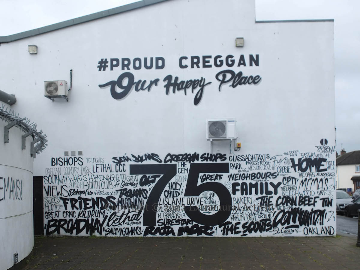 It celebrated its 75th anniversary this year (2022) with a parade, a stage play called A Green Hill Far Away, and a new mural by Peaball (ig) and Vents (ig) along with children from local schools (Derry Journal).