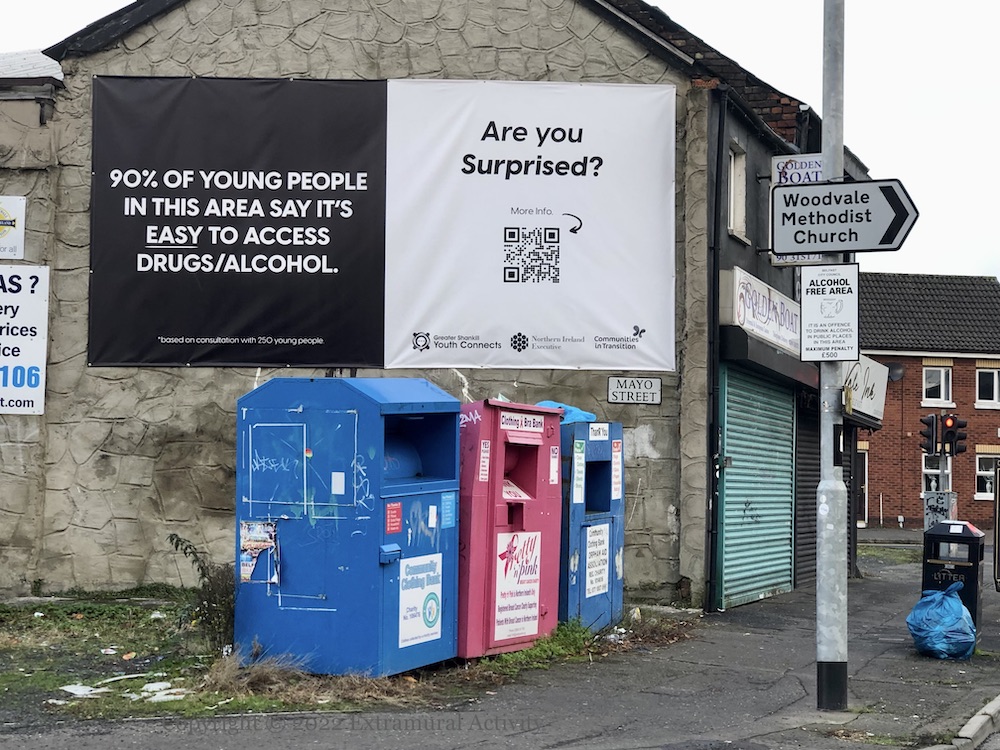 “90% of young people in this area say (based on consultation with 250 young people) it’s easy to access drugs/alcohol. Are you surprised?” For more on this campaign by Greater Shankill Youth Connects (Fb) promoting their “Shankill Talks” forums, see Belfast Live.