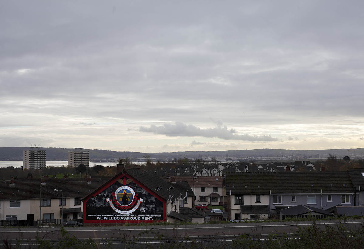 “Where so ever, how so ever or whenever we are called upon to make our exit, we will do as proud men.” This is quite a different message from the one produced within the Rathcoole estate for the 50th anniversary of the Red Hand Commandos, which stated that despite its venerable age, the four Rathcoole companies of the RHC “Await In The Shadows“. (That mural also depicted the kneeling men with sticks (on the left of today’s mural) and the linked post also contains the original photograph.)