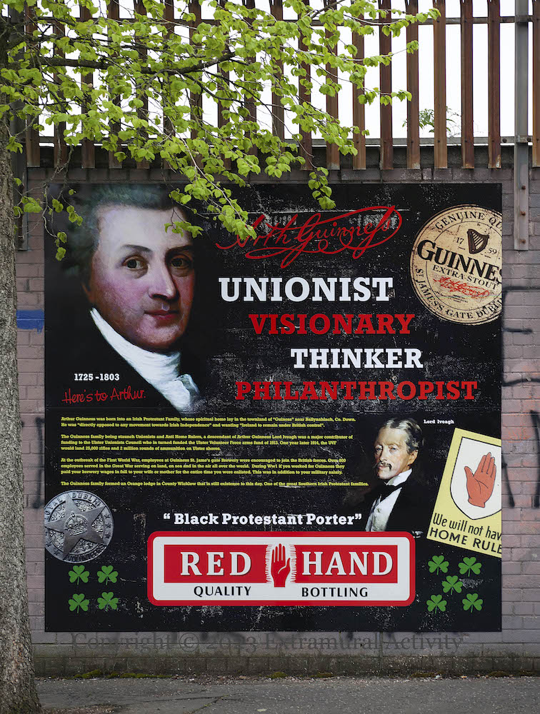 This is the most conciliatory statement ever made by loyalism and the decision to put it on Northumberland Street, especially in the context of the internationally famous and associated-with-Ireland Guinness and the “welcome” mural, suggests that the trio is directed at tourists rather than locals.