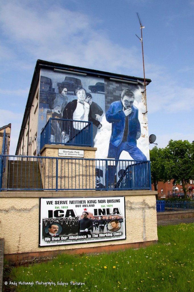 The Derry mural in the background is The Runner, part of The People’s Gallery.