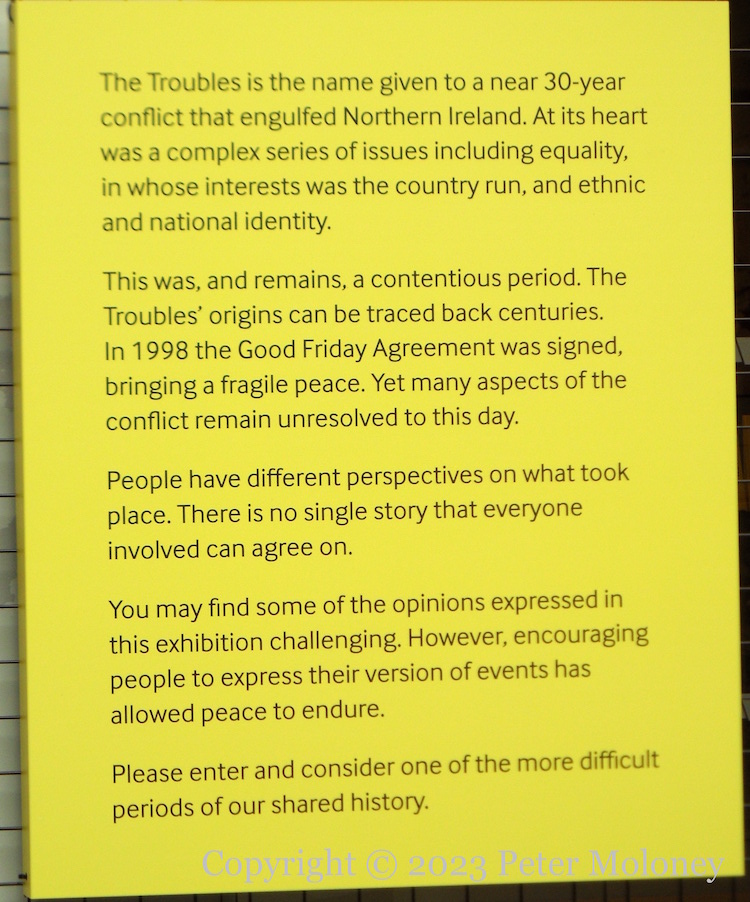 The Imperial War Museums’ ‘Living With The Troubles’ exhibition is open and free to the public (with advance booking available) at the Lambeth Road, London, location, from now until next January. The curators explain their intentions and hopes for the exhibition on youtube.