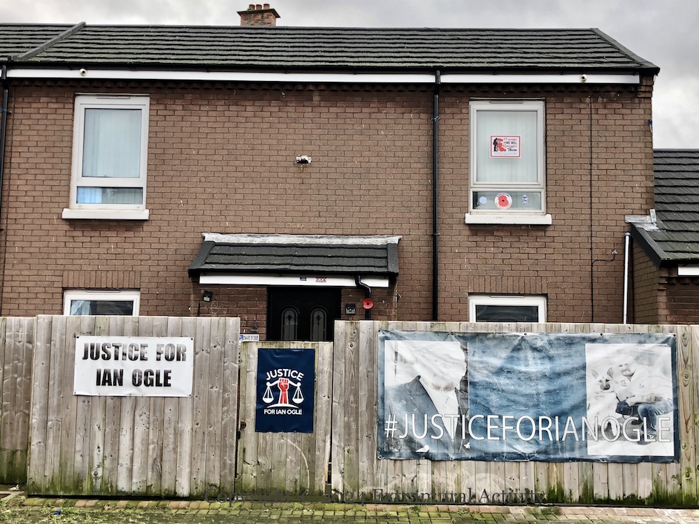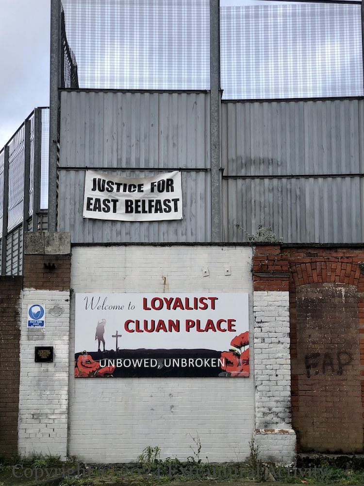Ogle lived in Cluan Place in east Belfast, site of these stickers and many other tarps and posters since his death. See previously: (2020) Justice For Ian Ogle | (2021) The Leaders Of This People Cause Them To Err | Remember Your Own | (2022) For His Family | What Fire Does Not Destroy It Hardens