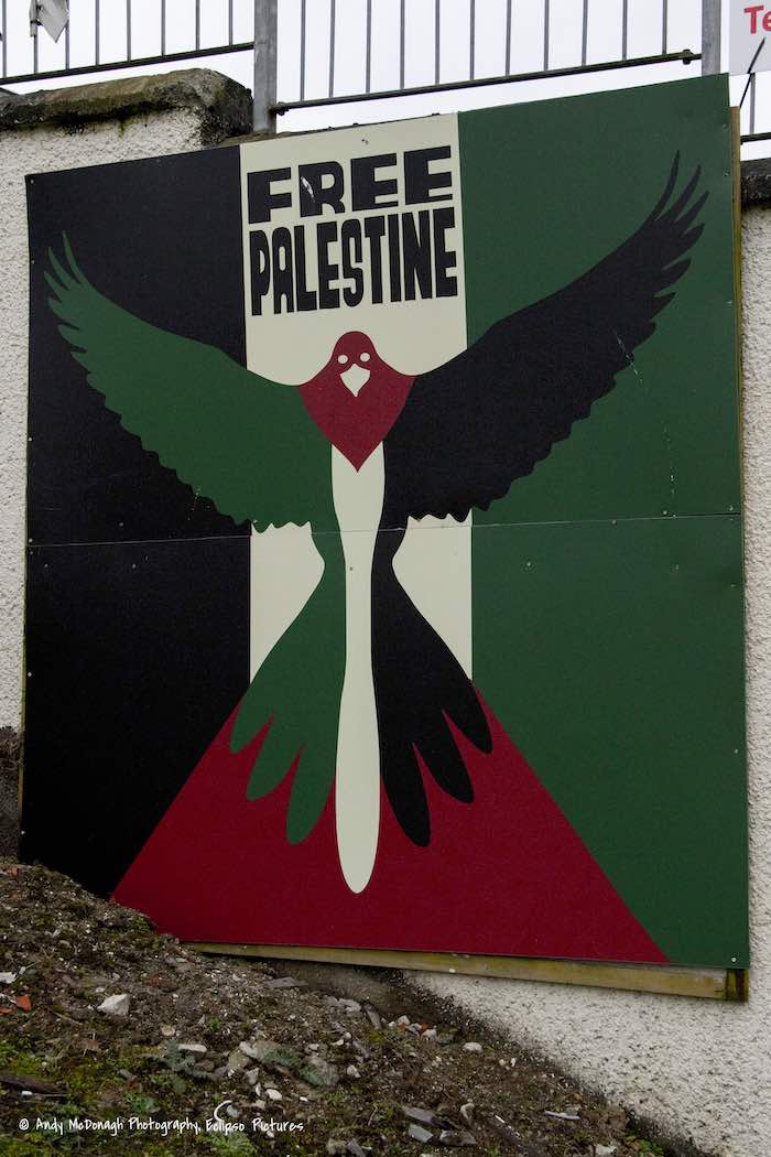 The other piece – a large bird in the colours of Palestine – is a poster by Videndomen (PPA).