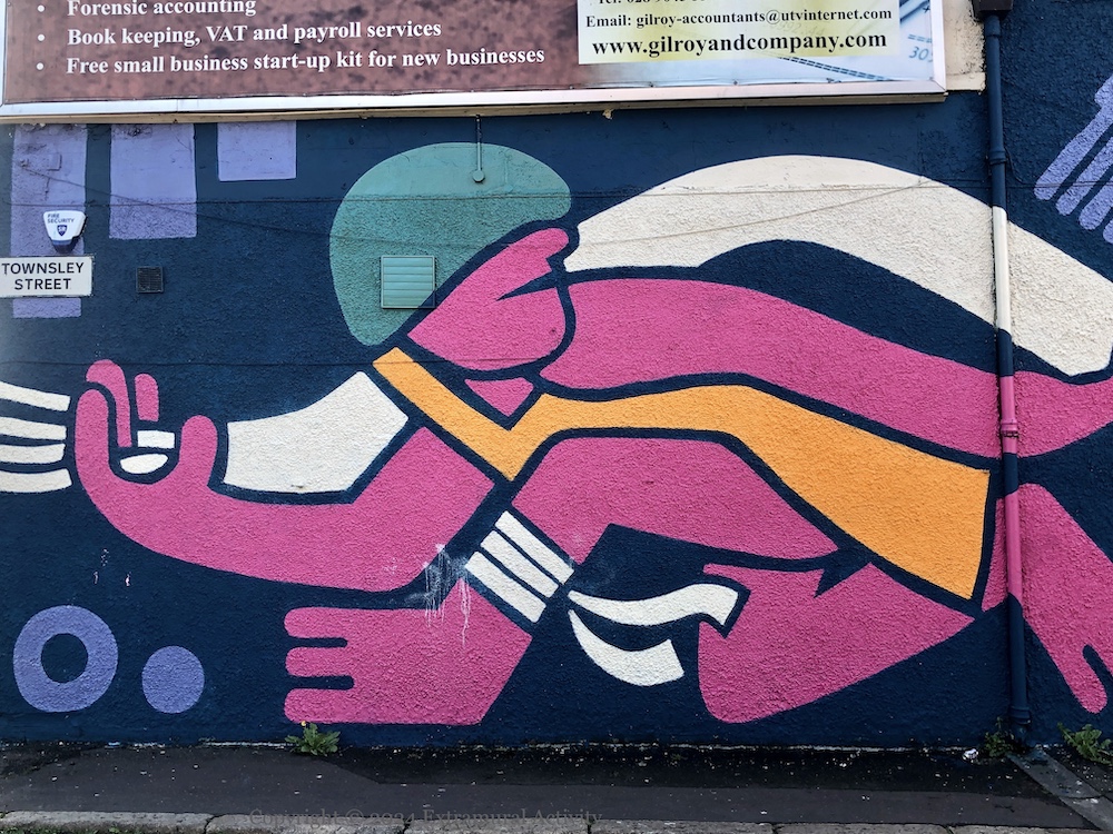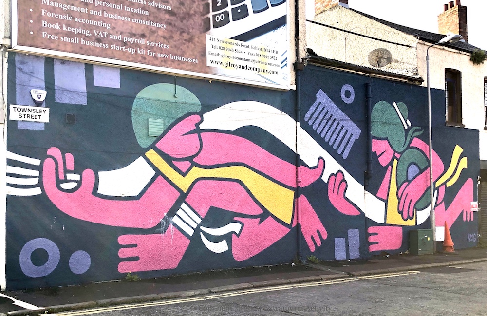 Townsley Street, east Belfast, next to the Narnia sculptures and facing Aslan Is On The Move.