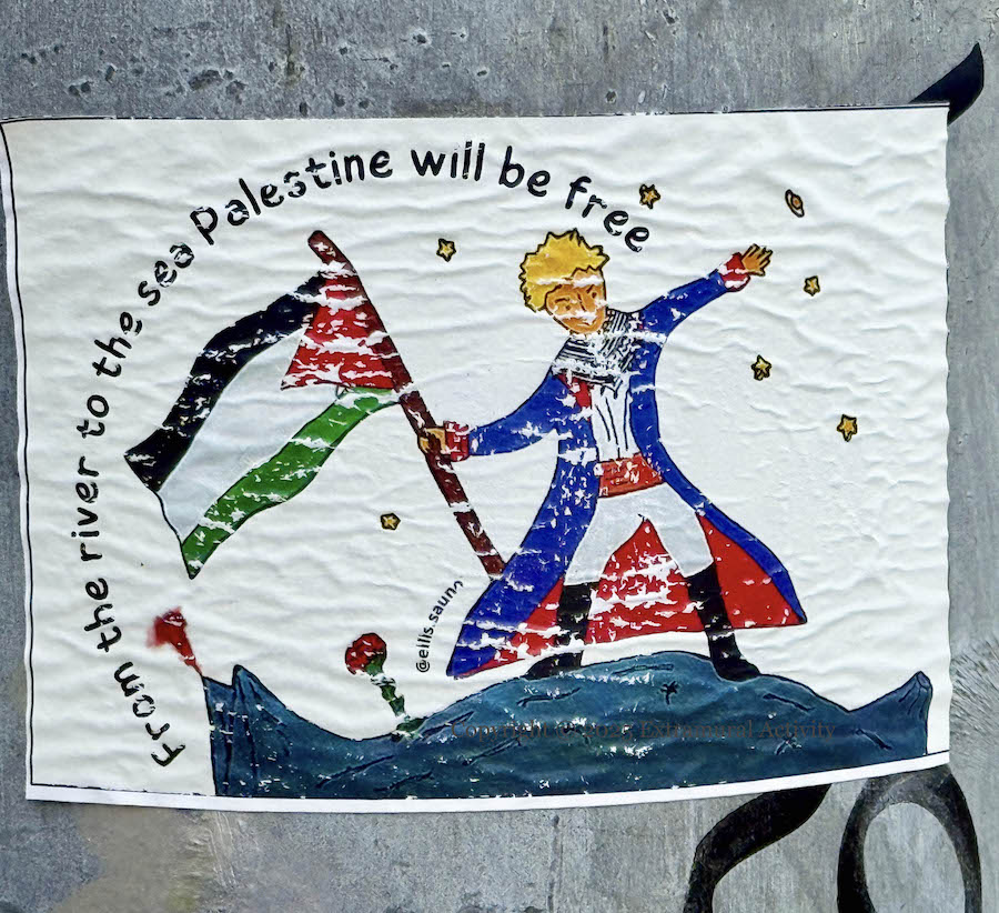 the Little Prince says “From the river to the sea Palestine will be free” (by Ellis Sauno (ig))