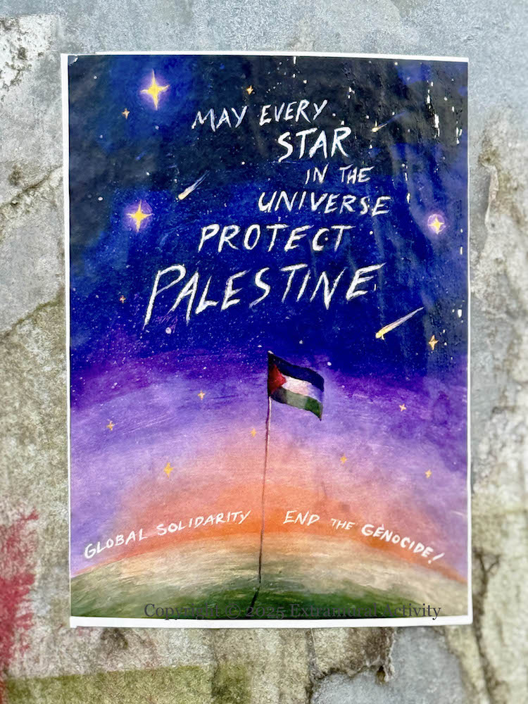 “May every star in the universe protect Palestine – Global solidarity – End the genocide!”