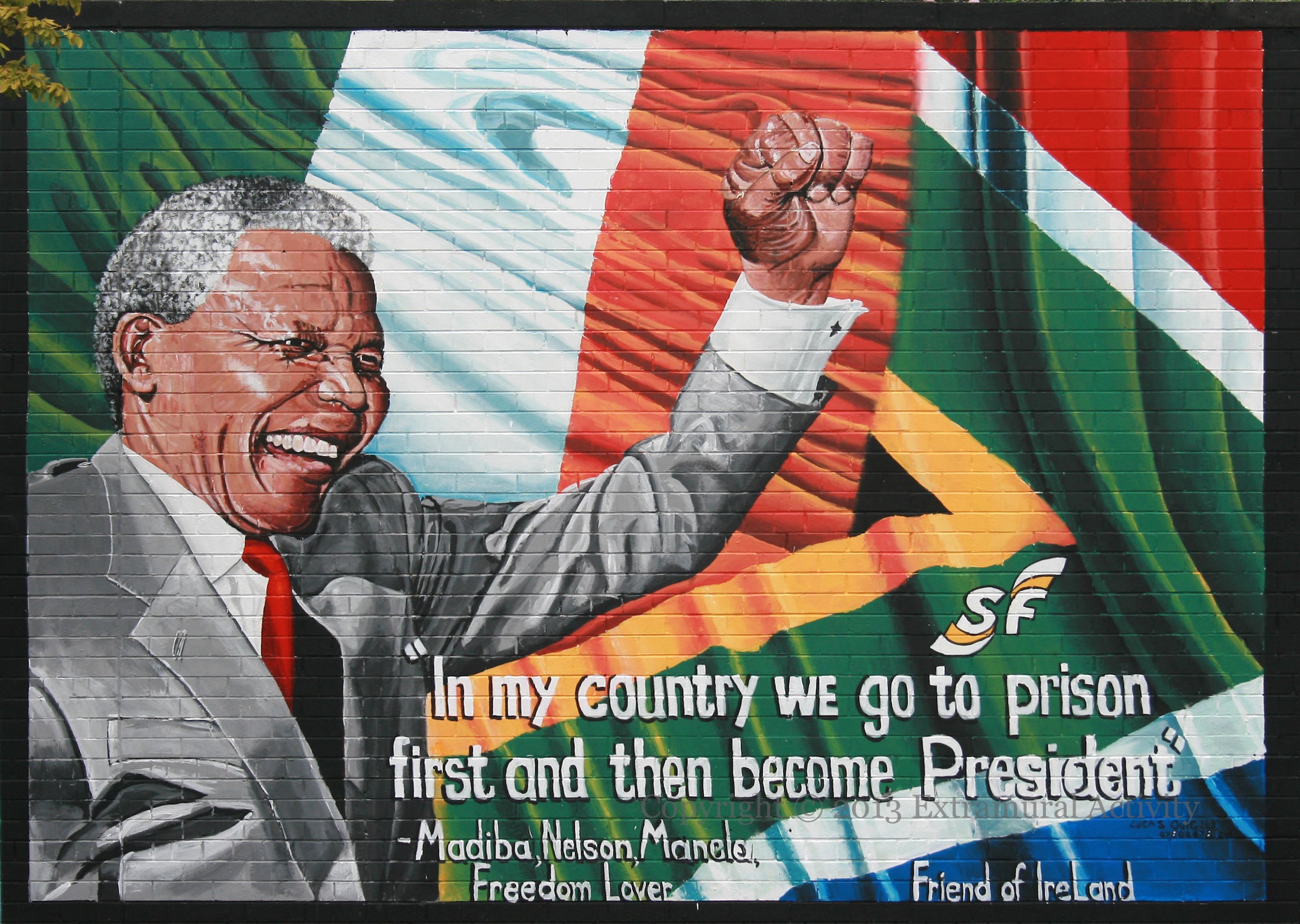 Free! Belfast has a solid black background. This is already an advance over simple graffiti and a few murals in which the imagery was painted directly onto the bare wall. In ‘classic’ murals’ not only is the whole wall painted but the background is integrated with the imagery in the foreground.