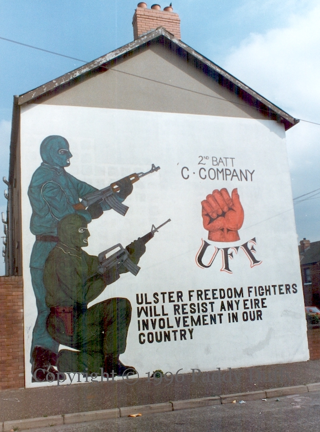 one was historical, linking the current UDA to the UDU, though it centrally depicted a hooded gunman who always seemed to be aiming directly at the viewer