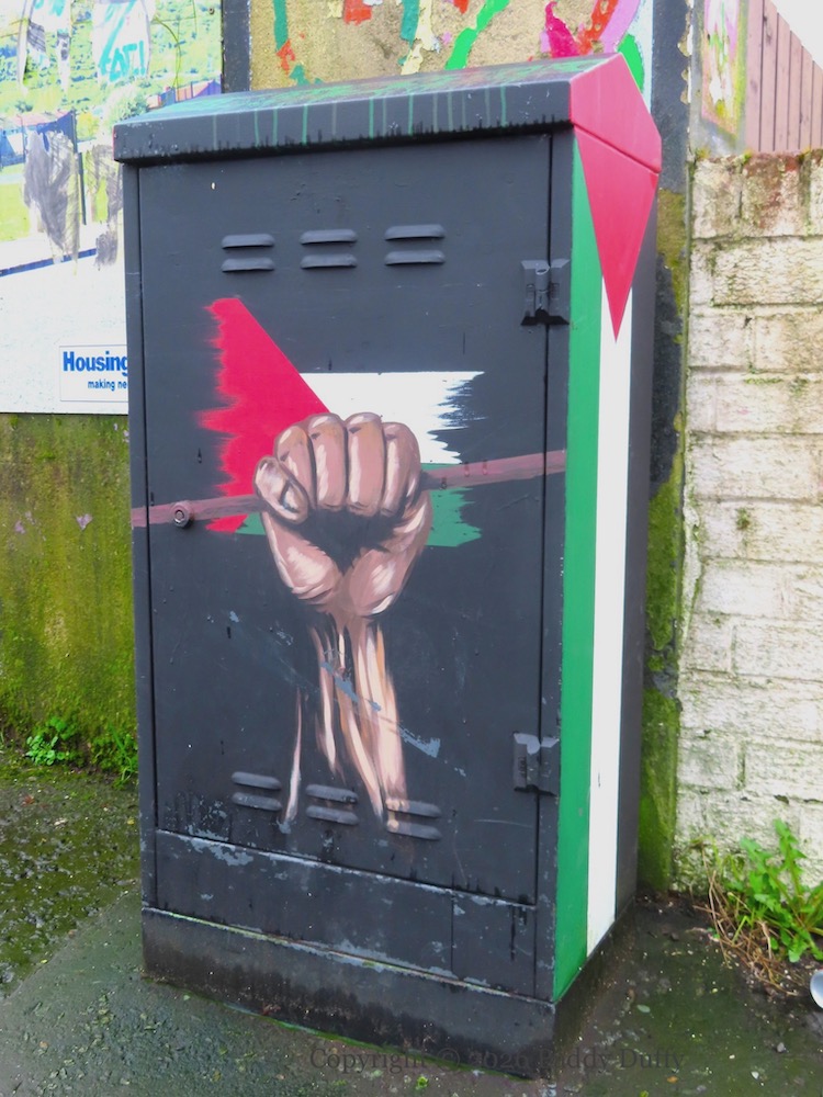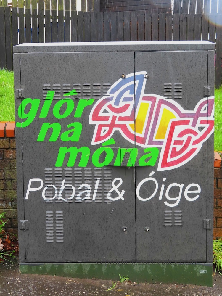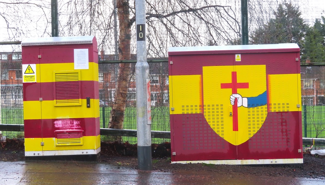 To be clear, these are electical boxes painted with street art . Paramilitary markings are sometimes put on electrical boxes – here are a few: UVF | IRA | BRY – and a number of boxes in CNR west Belfast have been painted with nationalist emblems and themes; these are included below.