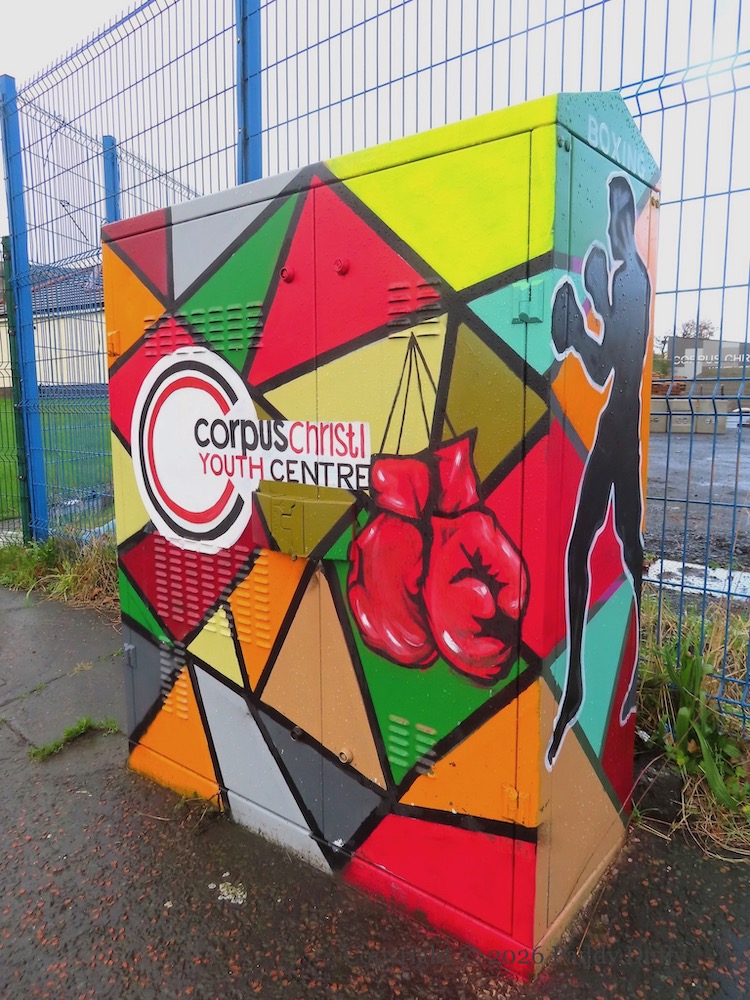 It is not clear that the painted boxes beyond the city centre have any connection to Belfast Canvas or any public funding.