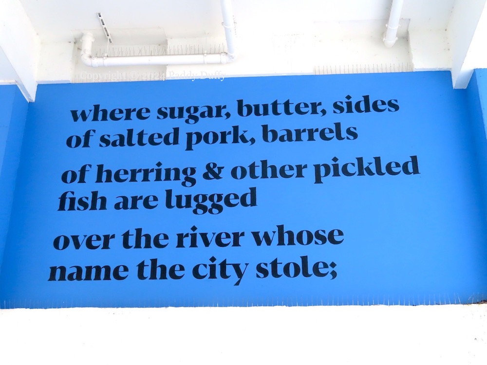 Thomas Russell’s quote “Every time I look at a lump of sugar, I see a drop of African blood” was incorporated into a piece by Peter Strain (2022). Strain says (ig) the piece is in Sugarhouse Entry, which is closed. Update: The image below is from 2024, when Sugarhouse Entry was re-opened.