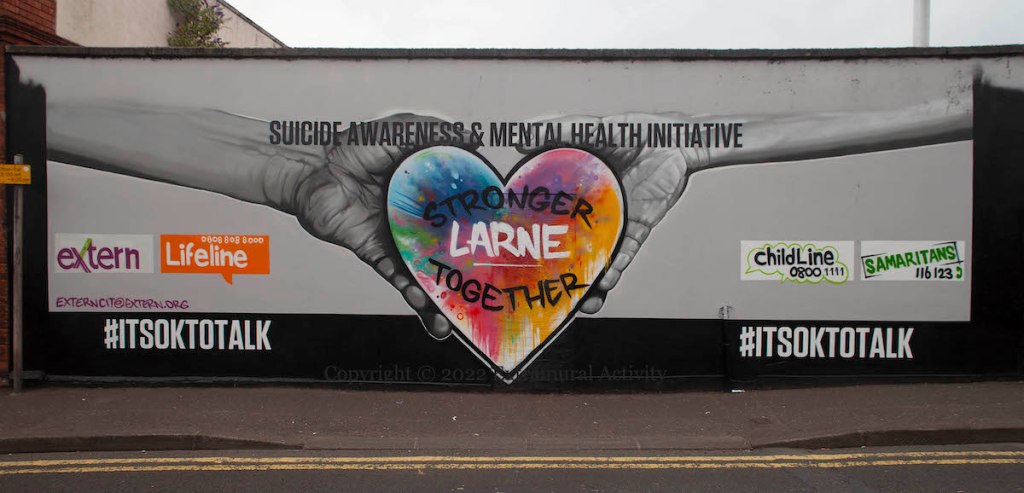 The mural, in Larne’s Main Street, was designed by emic (ig) and painted by Dee Craig (Fb). Since 2021 you can also follow a trail around Richard Hayward’s East Antrim .