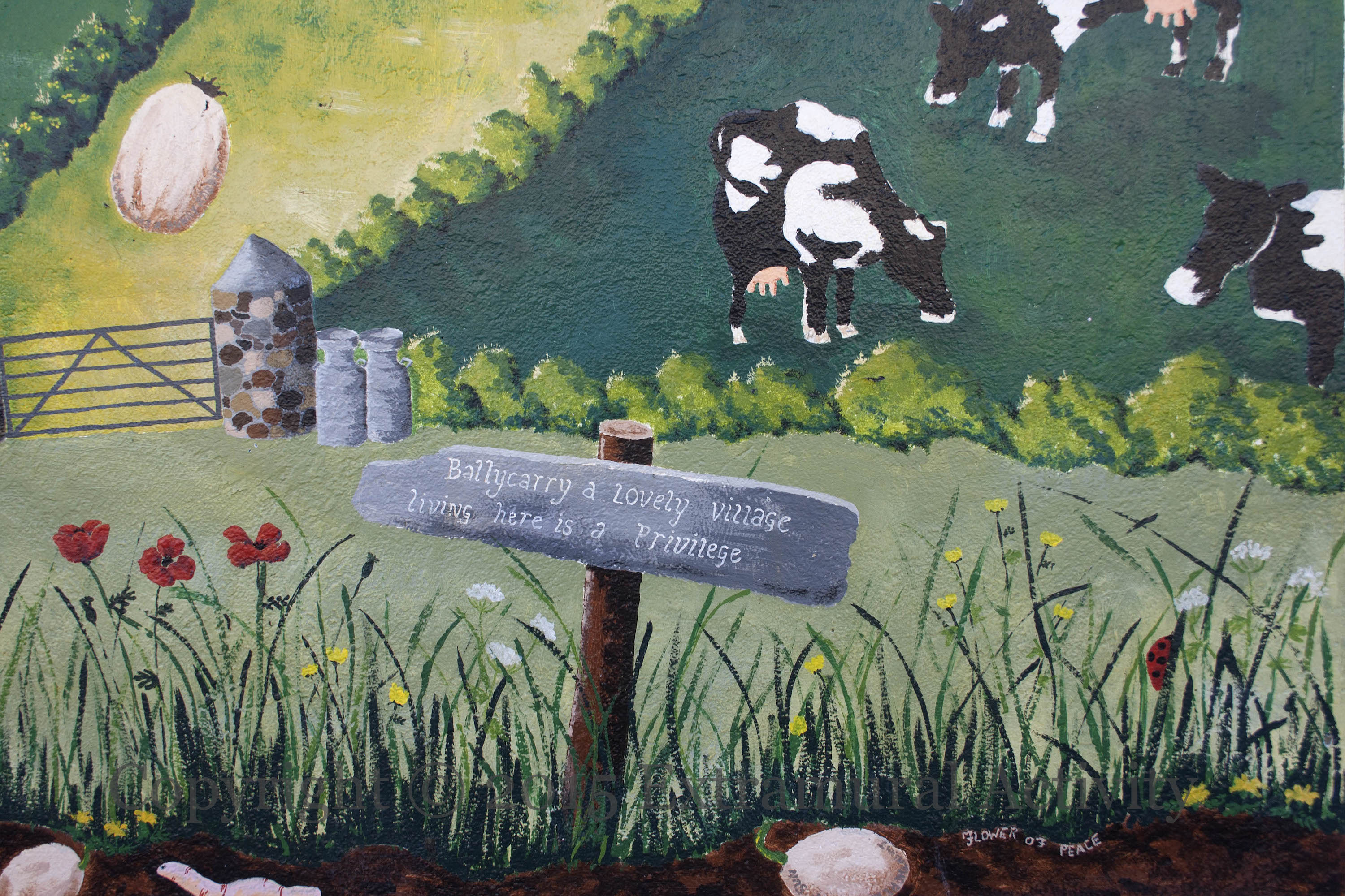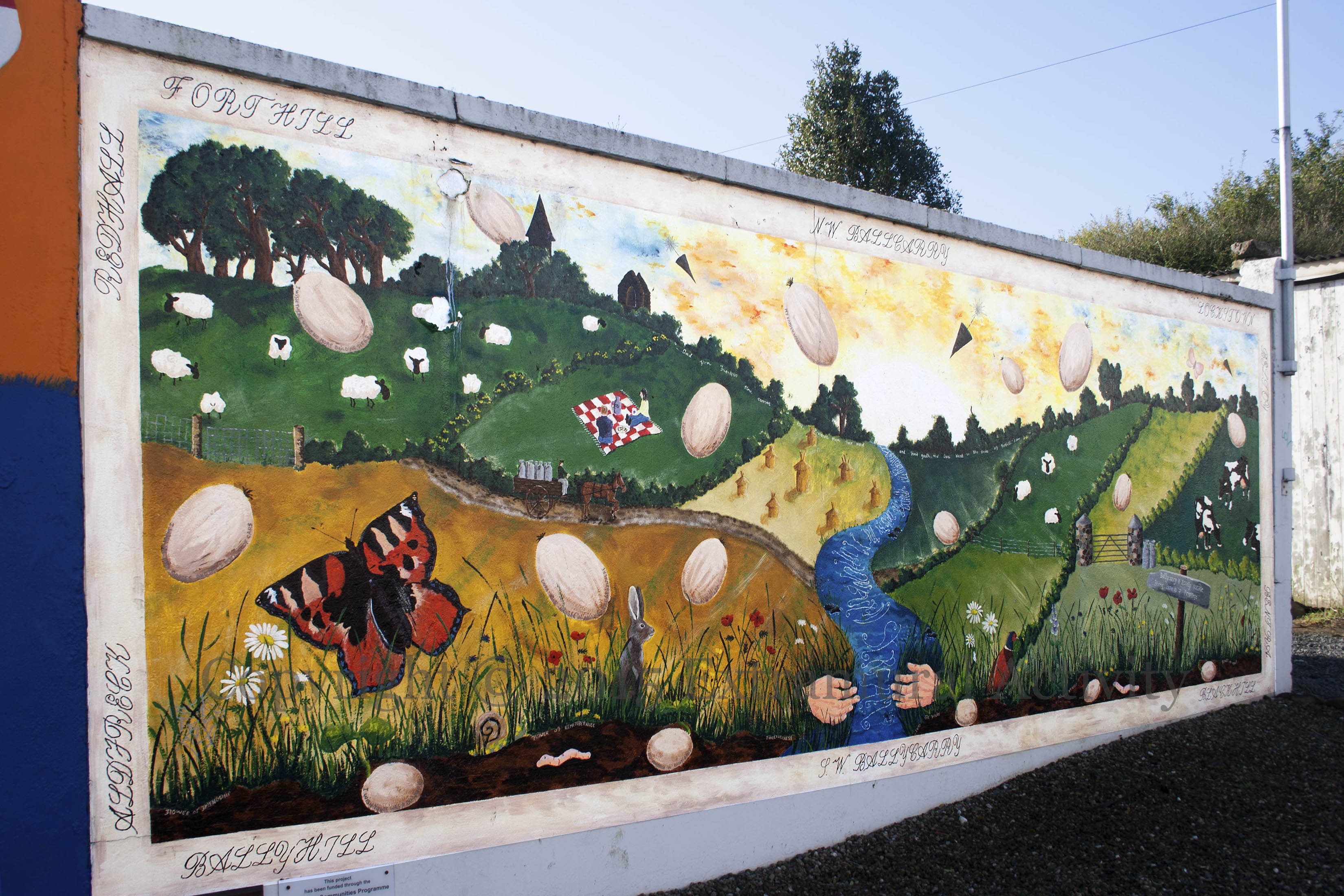 This trio of Ulster Defence Association, Ulster Freedom Fighters, and Ulster Young Militants boards are in Holywood, County Down. The overtly paramilitary UFF acts as the link between the others, in that the UDA and UYM emblems appear in miniature alongside its own. The UFF slogan “Ferriens tego” is missing from its board. The local troop is the North Down 2nd Batt. D Coy.