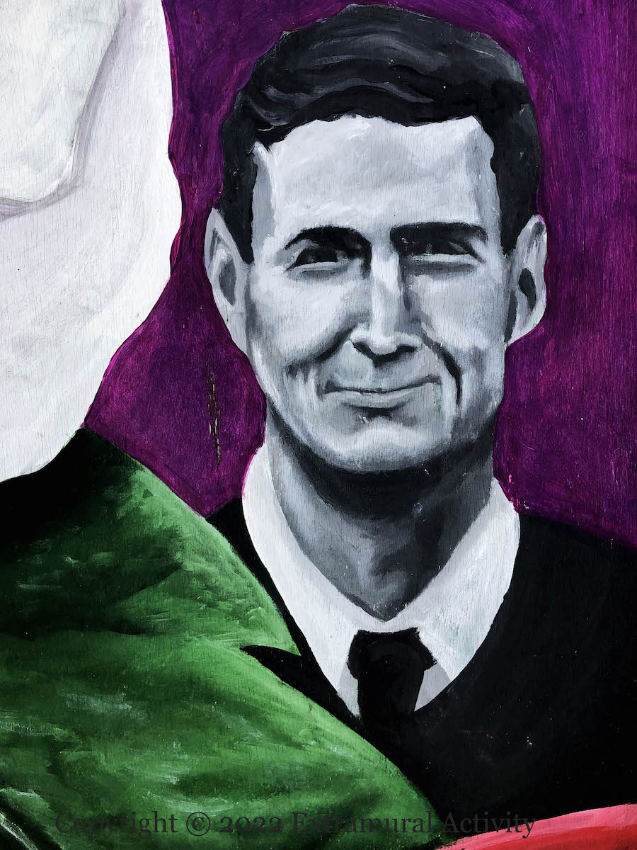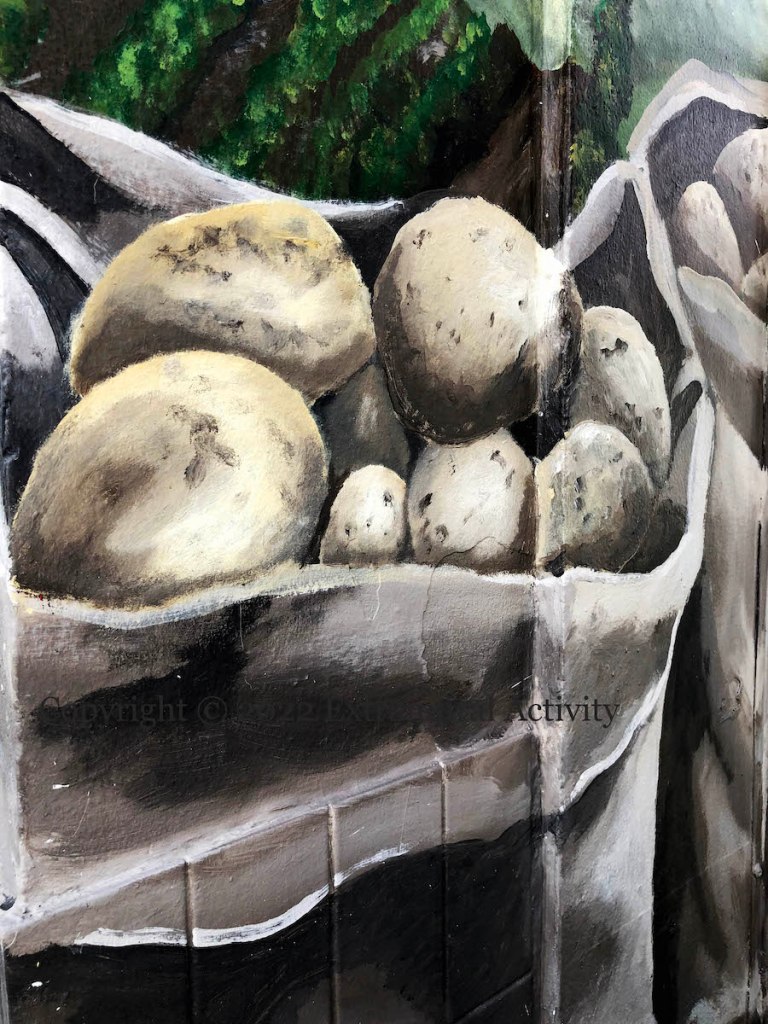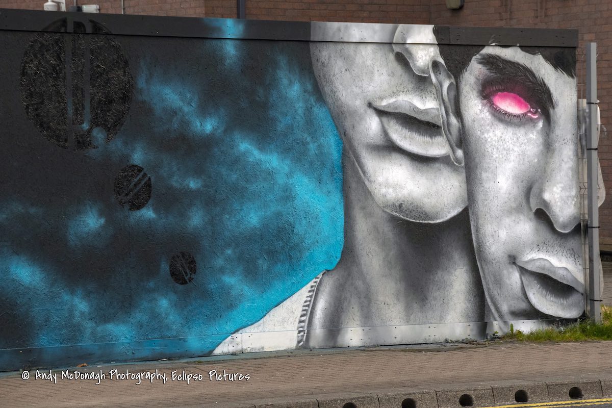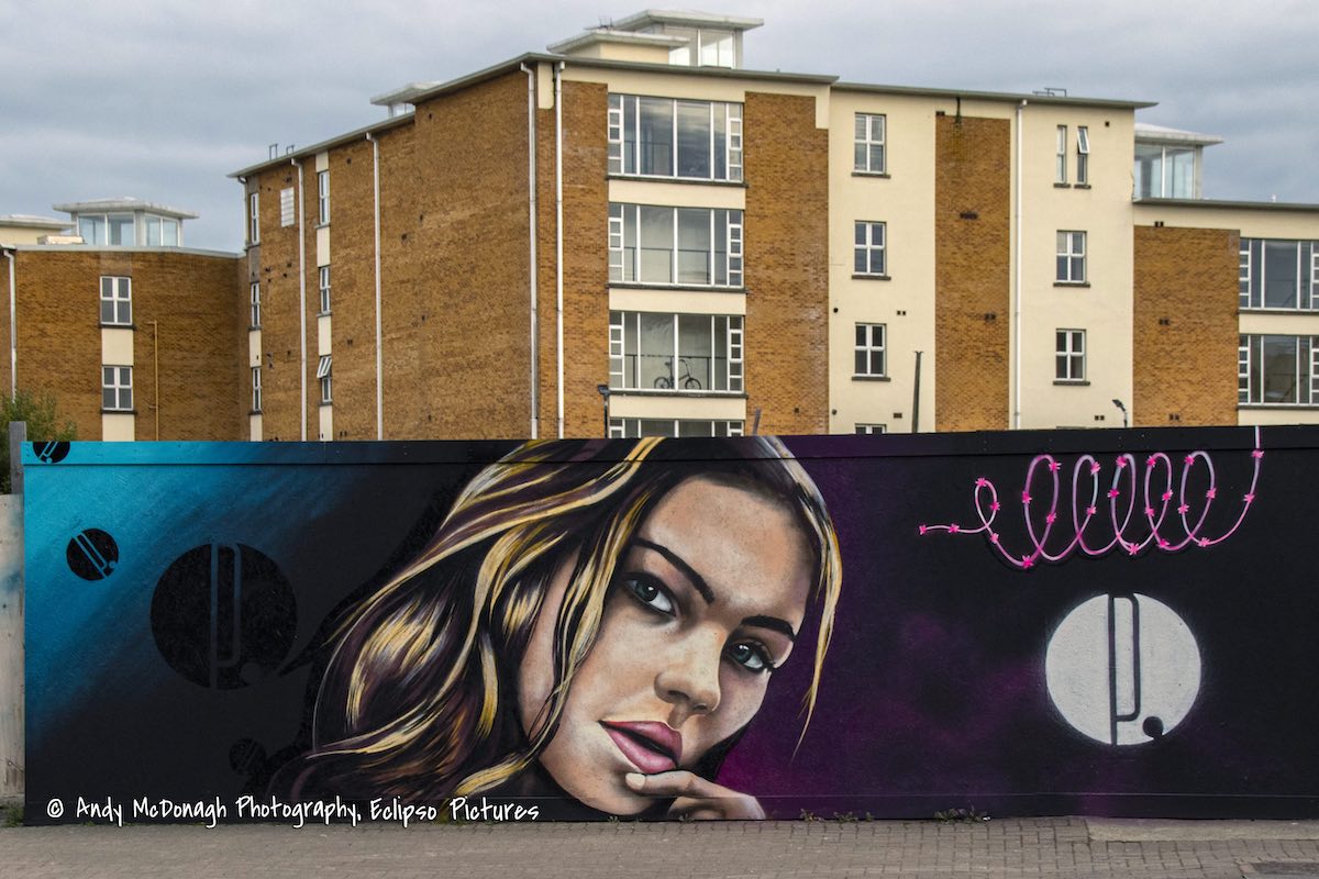 The mural was painted by Mark Ervine. The partially-completed mural was featured in the Financial Times all the way back in November 2018; it was eventually finished in 2021 and given an anti-graffiti coating this (2022) summer.